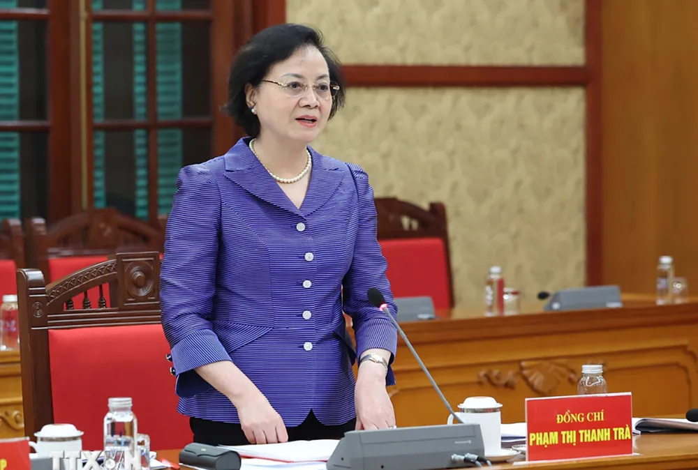 Bộ trưởng Bộ Nội vụ Phạm Thị Thanh Trà báo cáo tại buổi làm việc. Ảnh: TTXVN
