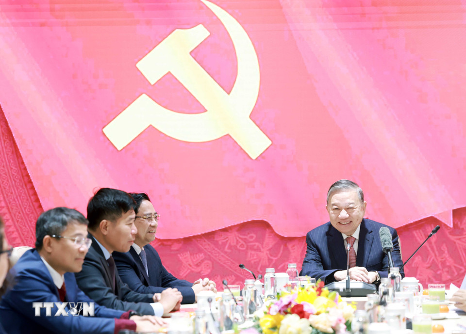 Tổng Bí thư Tô Lâm, Thủ tướng Phạm Minh Chính và các đại biểu. (Ảnh: Thống Nhất/TTXVN)