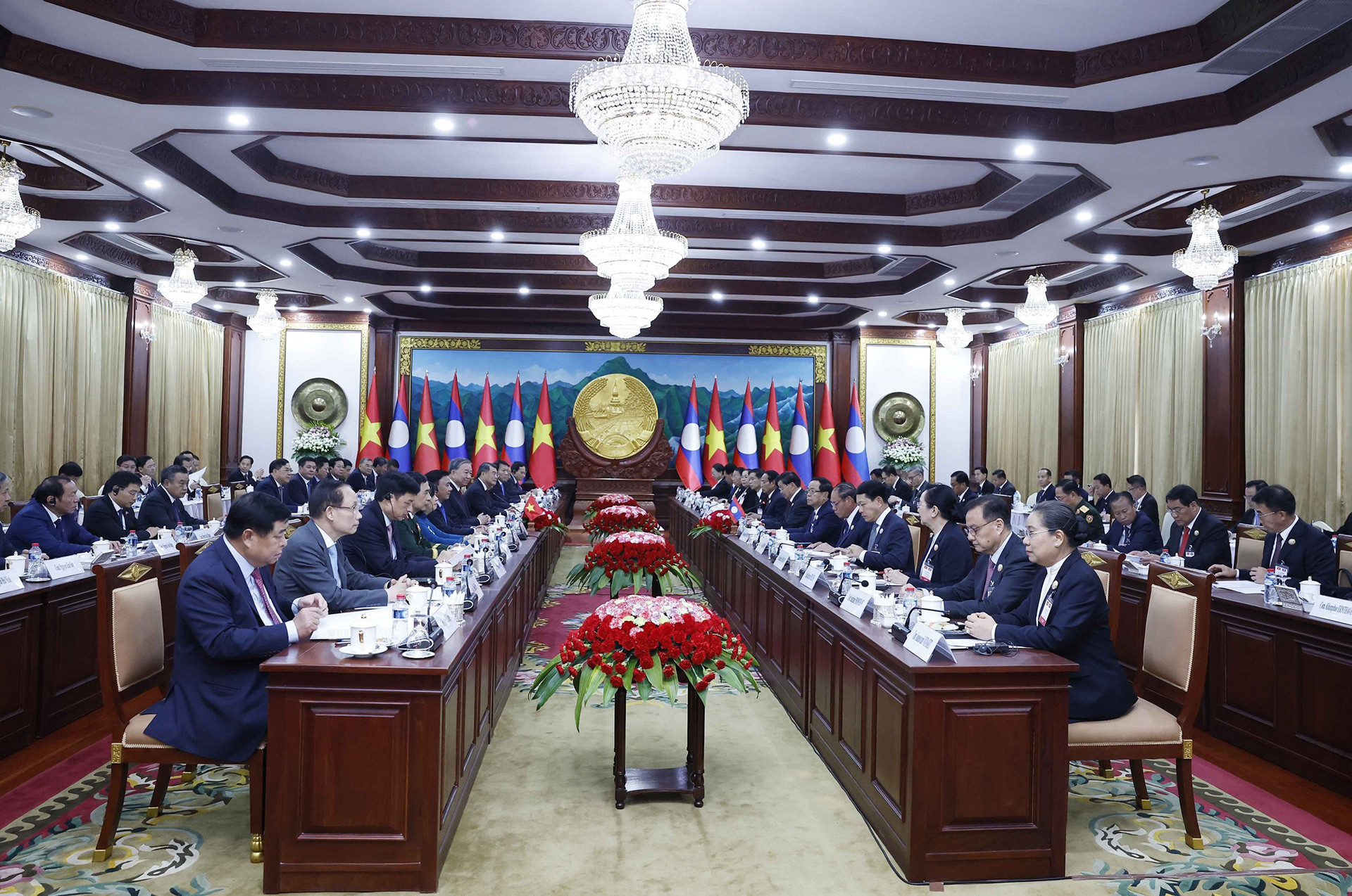Tổng Bí thư Tô Lâm hội đàm với Tổng Bí thư, Chủ tịch nước Lào Thongloun Sisoulith. Ảnh: TTXVN