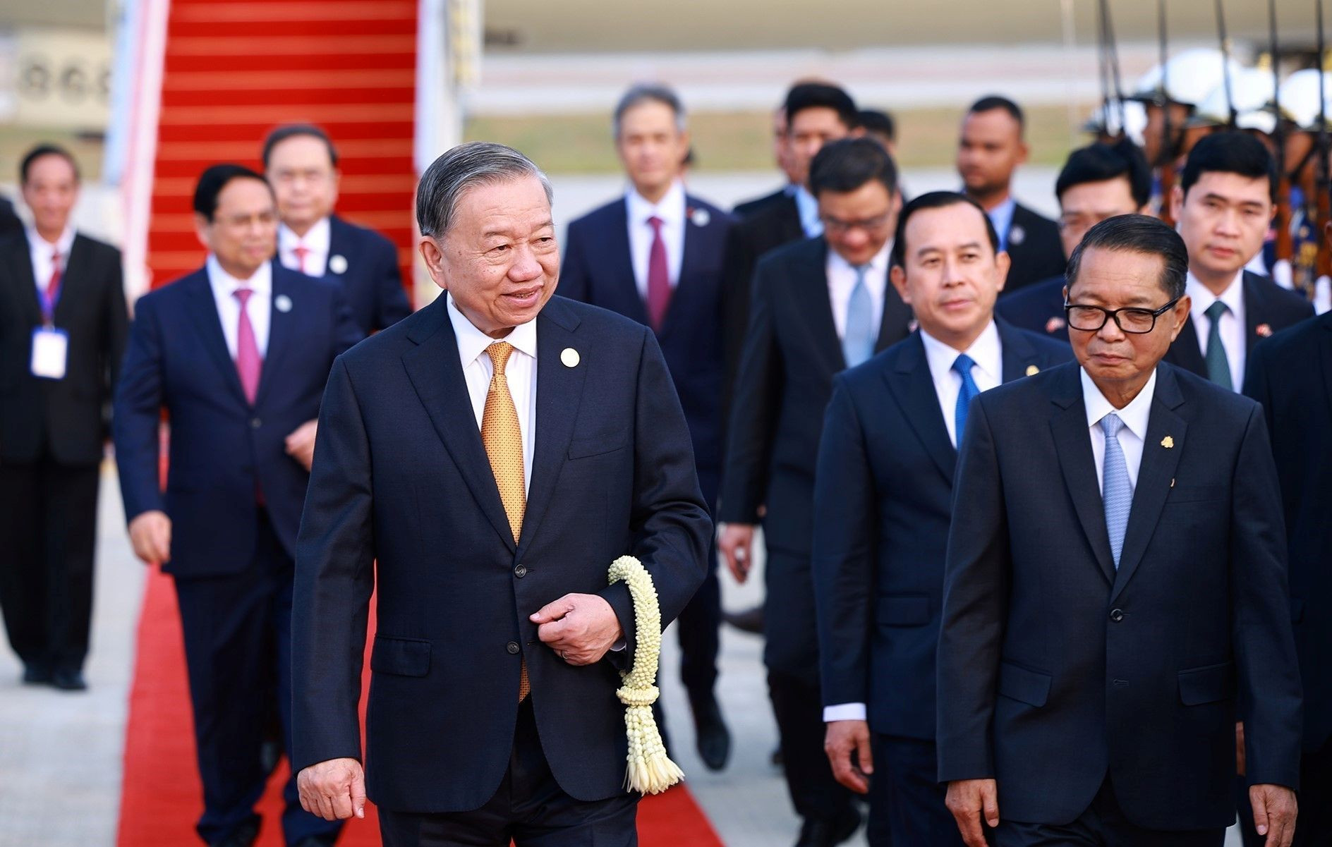 Tổng Bí thư Tô Lâm đến Phnom Penh, bắt đầu thăm Campuchia. Ảnh: TTXVN