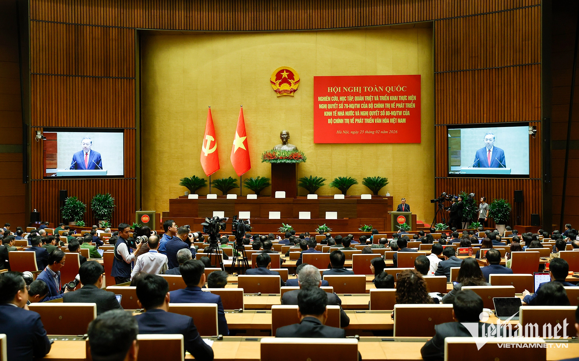 Ban Bí thư sáng nay tổ chức hội nghị toàn quốc nghiên cứu, học tập, quán triệt và triển khai thực hiện Nghị quyết số 79 về phát triển kinh tế nhà nước và Nghị quyết số 80 về phát triển văn hóa Việt Nam của Bộ Chính trị.