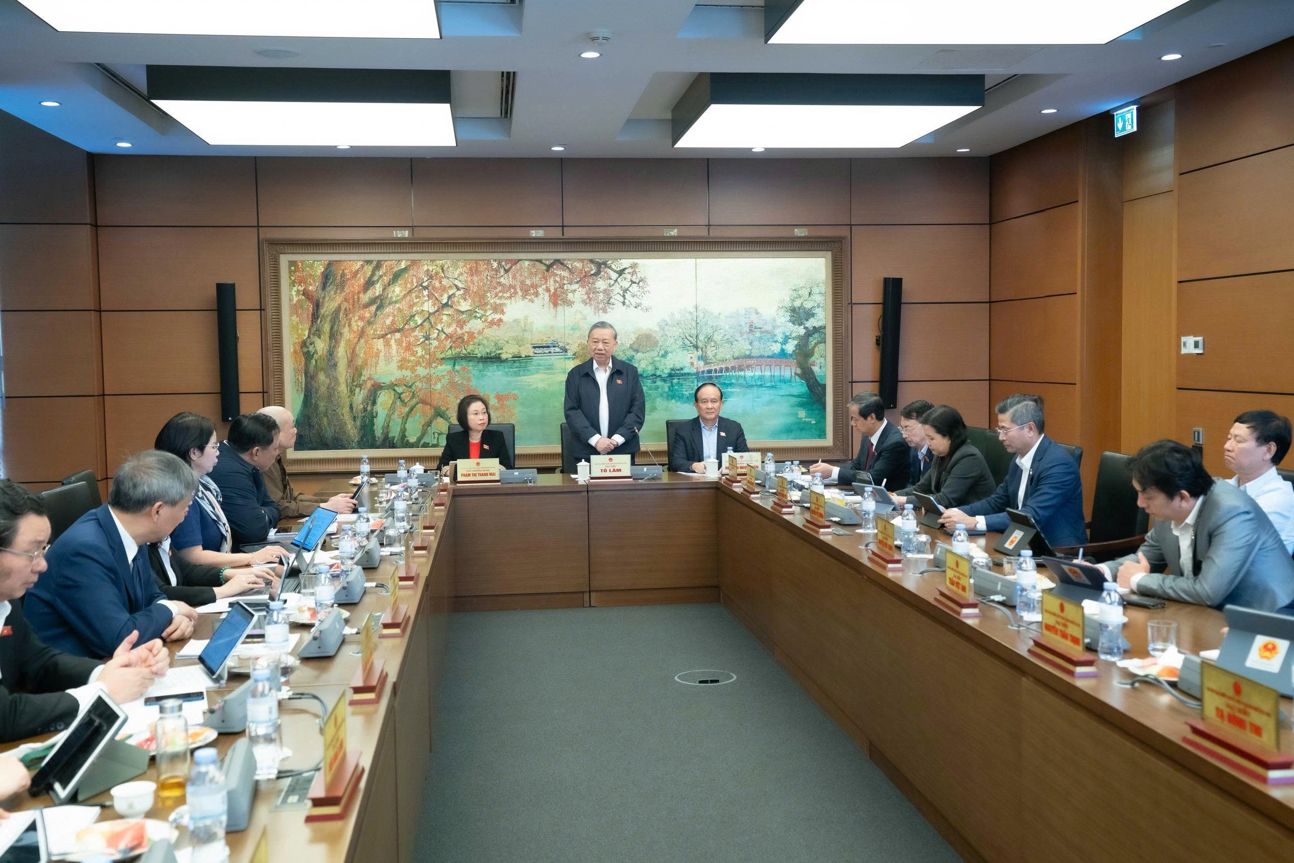 Phát biểu tại tổ, Tổng Bí thư Tô Lâm nhấn mạnh rằng các chương trình liên quan đến y tế, giáo dục và văn hóa đều là những trụ cột quan trọng, là động lực phát triển quốc gia, đặc biệt trong chiến lược phát triển con người và nguồn nhân lực. Theo ông, mục tiêu cuối cùng là chăm lo cho con người, có nguồn nhân lực tốt, sức khỏe và bản lĩnh, tư duy kiến thức, tri thức để 20 năm tới xây dựng và phát triển con người Việt Nam.