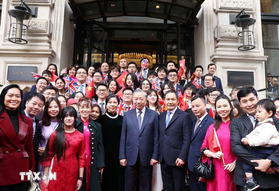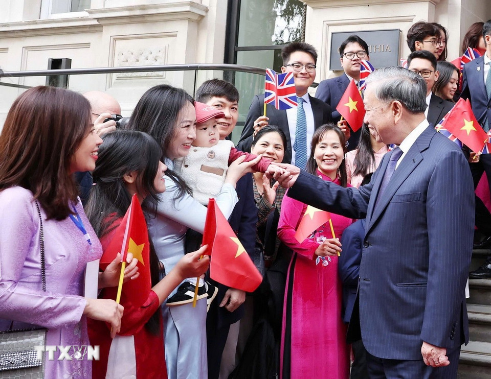 Cộng đồng người Việt Nam tại Anh tiễn Tổng Bí thư Tô Lâm và Phu nhân. (Ảnh: Thống Nhất/TTXVN)