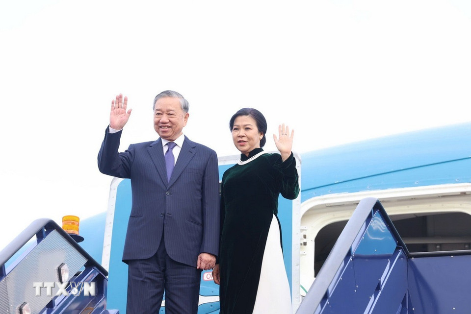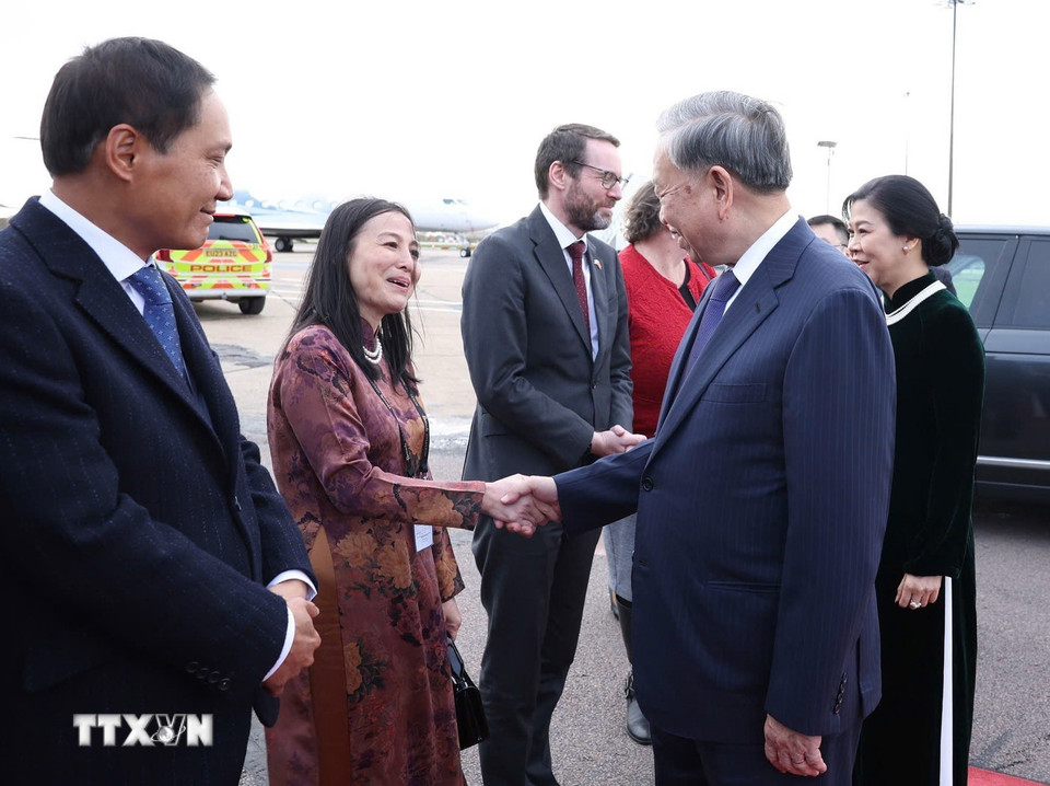 Tổng Bí thư Tô Lâm và Phu nhân rời thủ đô London về nước, kết thúc tốt đẹp chuyến thăm chính thức Liên hiệp Vương quốc Anh và Bắc Ireland. (Ảnh: Thống Nhất/TTXVN)