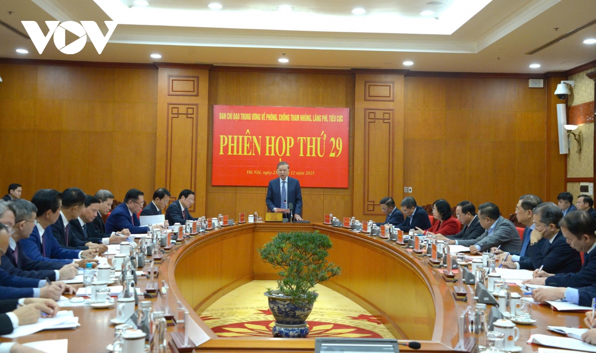 Chiều nay 25/12, tại Trụ sở Trung ương Đảng, Tổng Bí thư Tô Lâm, Trưởng Ban Chỉ đạo Trung ương về phòng, chống tham nhũng, lãng phí, tiêu cực đã chủ trì Phiên họp thứ 29 để thảo luận, cho ý kiến về kết quả hoạt động năm 2025 và Chương trình công tác năm 2026 của Ban Chỉ đạo.