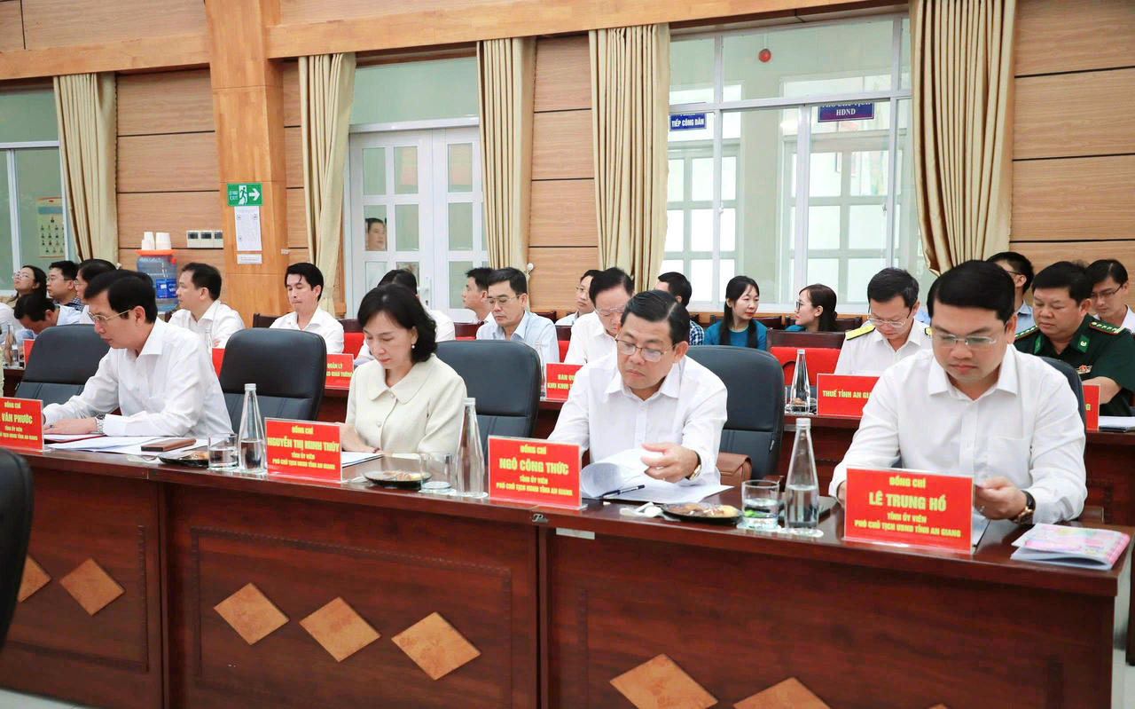 Lãnh đạo Tỉnh ủy, UBND tỉnh, các Sở, ngành tỉnh An Giang dự buổi làm việc với Tổng Bí thư Tô Lâm.