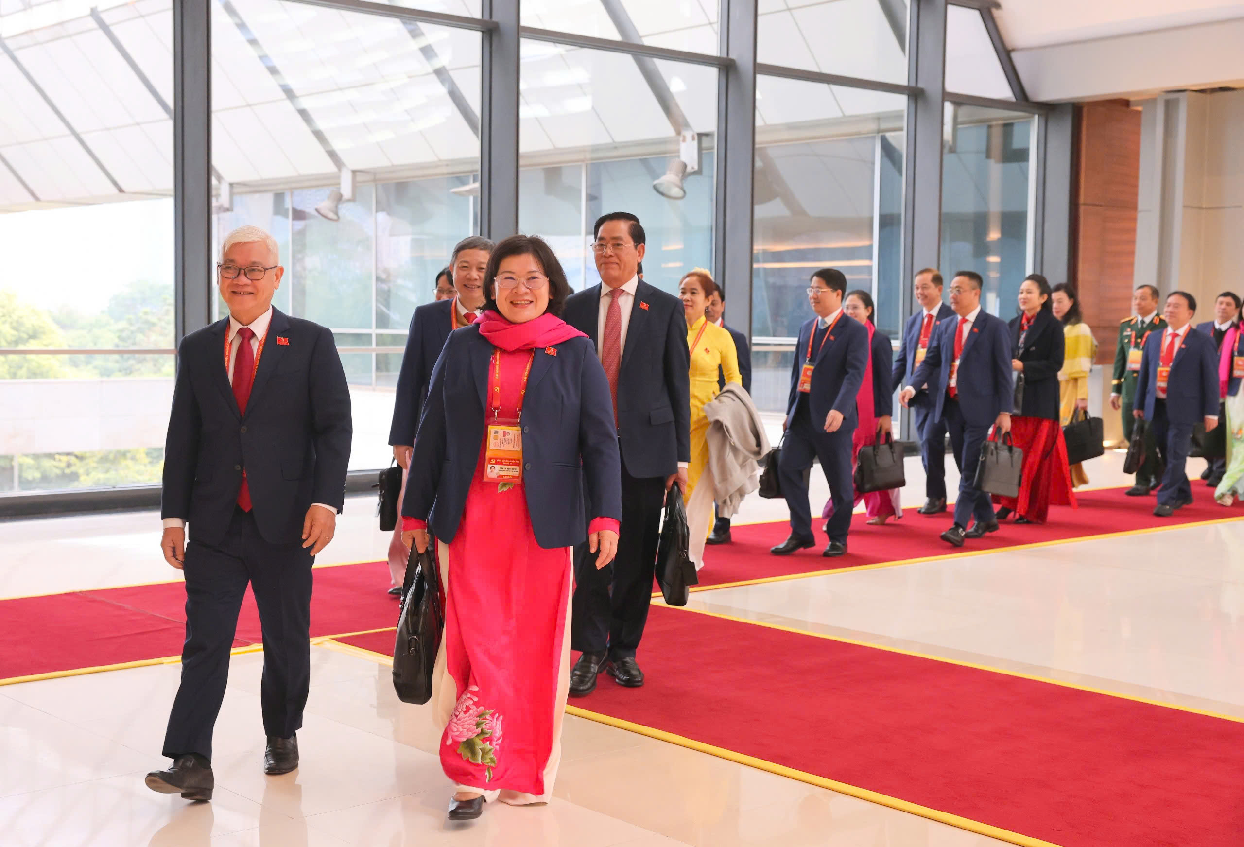 Các đại biểu Đoàn đại biểu Đảng bộ TPHCM tới dự phiên bế mạc, chiều 23-1. Ảnh: QUANG PHÚC