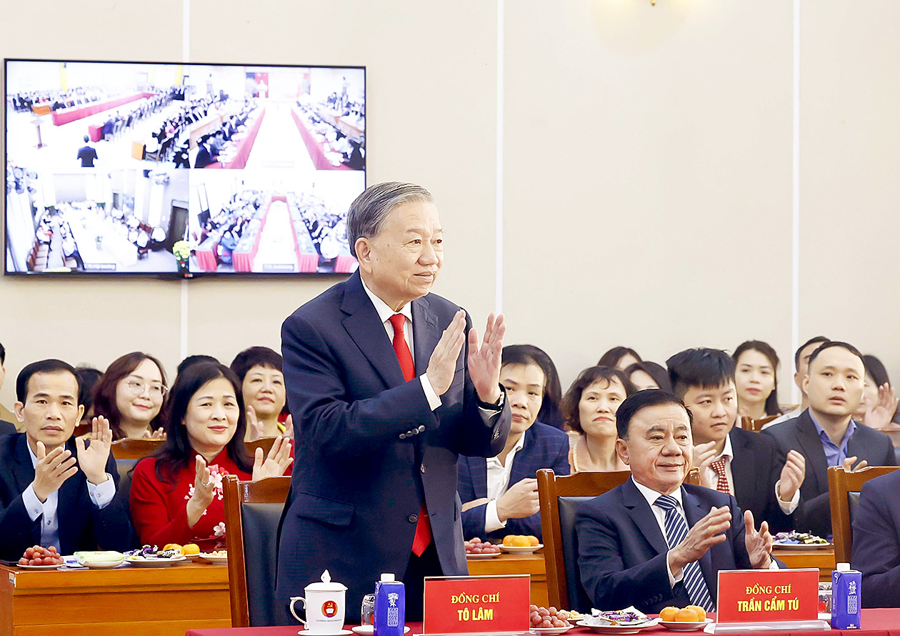 Phát biểu tại cuộc gặp mặt, Tổng Bí thư Tô Lâm nêu rõ vừa khép lại một năm có rất nhiều sự kiện trọng đại, khối lượng công việc lớn, nhiều việc mới, việc khó, có việc chưa có tiền lệ; đồng thời chính thức bước vào giai đoạn triển khai mạnh mẽ các quyết sách lớn mà Đại hội XIV của Đảng đã đề ra.