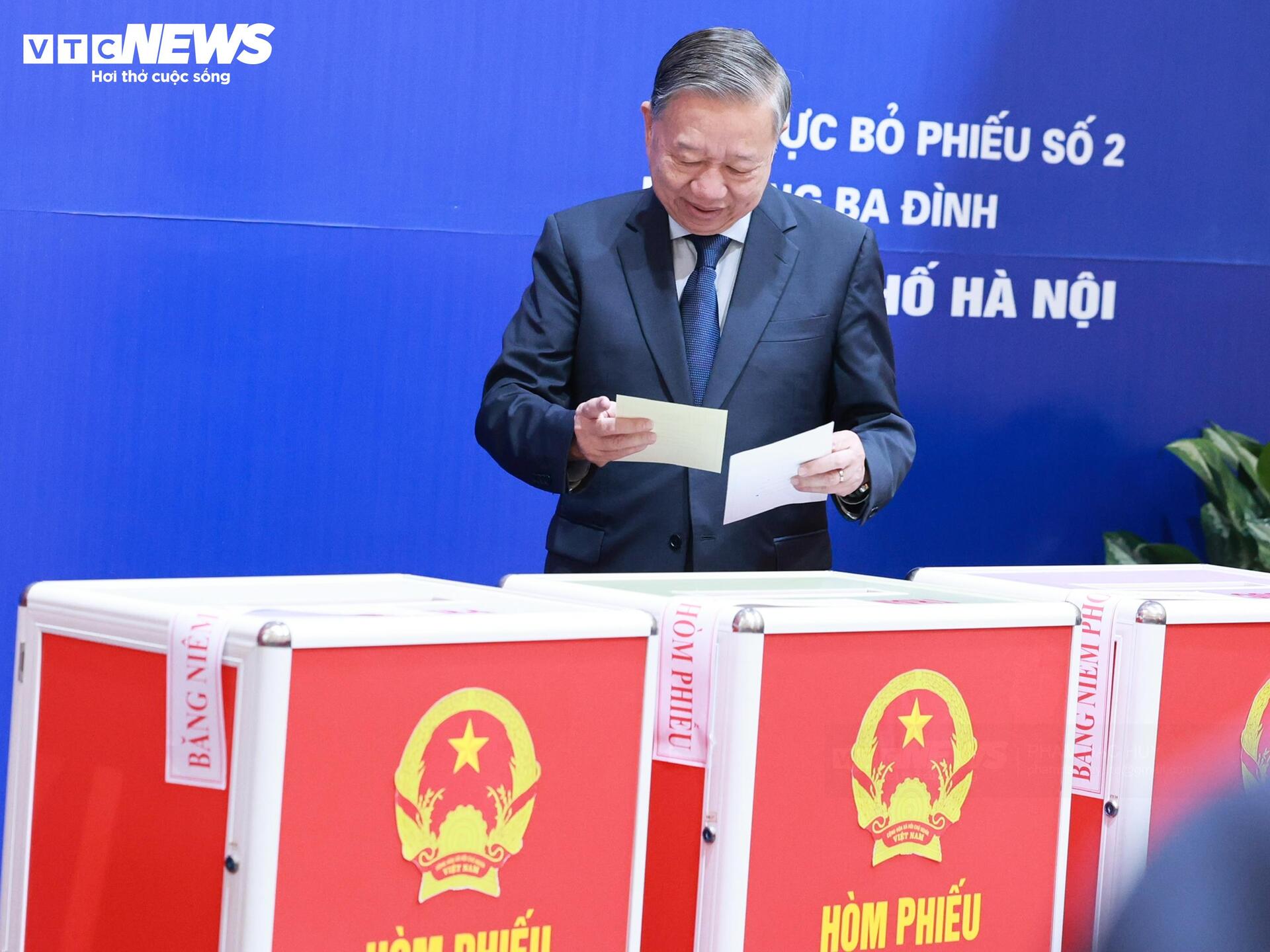 Tổng Bí thư Tô Lâm tham dự bỏ phiếu bầu cử đại biểu Quốc hội khóa XVI, đại biểu HĐND các cấp nhiệm kỳ 2026-2031 tại Khu vực bỏ phiếu số 2 phường Ba Đình, TP Hà Nội.