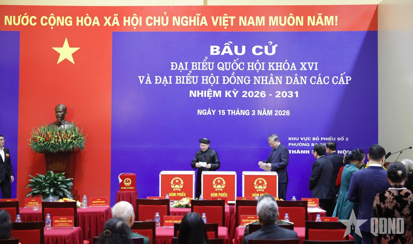 Tổng Bí thư Tô Lâm bỏ phiếu bầu cử đại biểu Quốc hội khóa XVI và HĐND các cấp nhiệm kỳ 2026-2031. Ảnh: NHƯ Ý