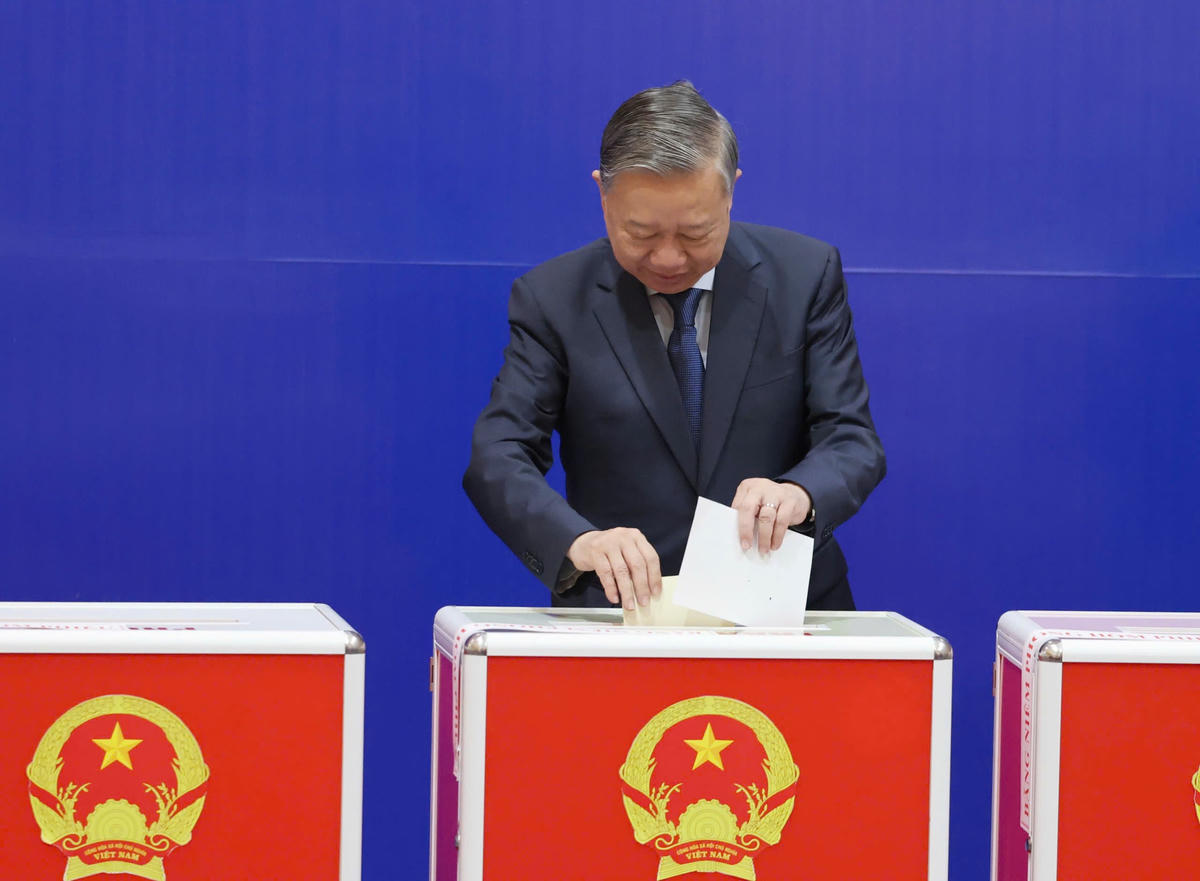 Tổng Bí thư Tô Lâm bỏ phiếu bầu cử đại biểu Quốc hội khóa XVI và HĐND các cấp nhiệm kỳ 2026-2031. Ảnh Viết Chung