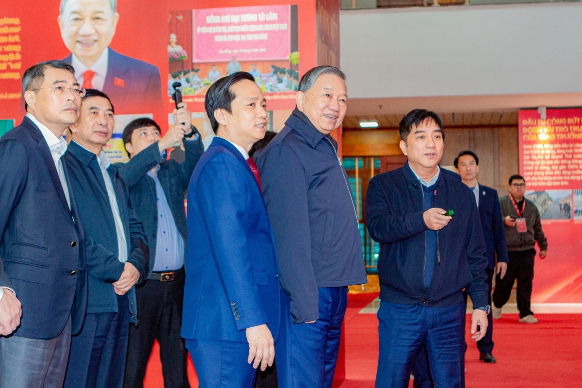 Trước khi làm việc với Đảng bộ tỉnh Cao Bằng, đồng chí Tổng Bí thư đã tham quan triển lãm 10 sự kiện nổi bật của tỉnh Cao Bằng trong năm 2025, trong đó có dự án cao tốc Đồng Đăng (Lạng Sơn) - Trà Lĩnh (Cao Bằng).