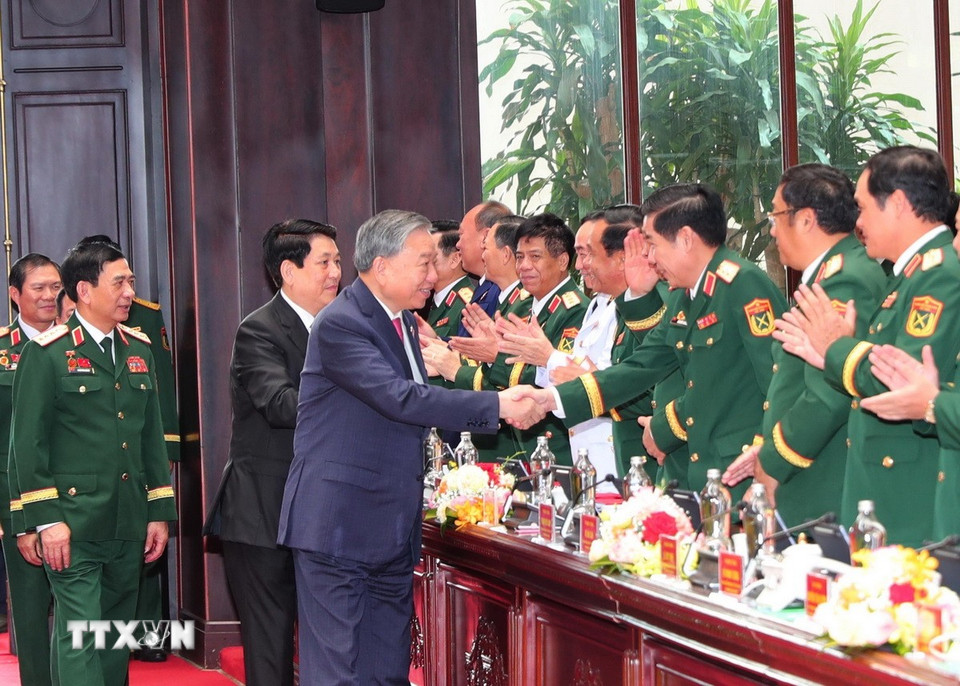 Tổng Bí thư Tô Lâm dự Phiên bế mạc Đại hội Đảng bộ Quân đội lần thứ XII. (Ảnh: Trọng Đức/TTXVN)