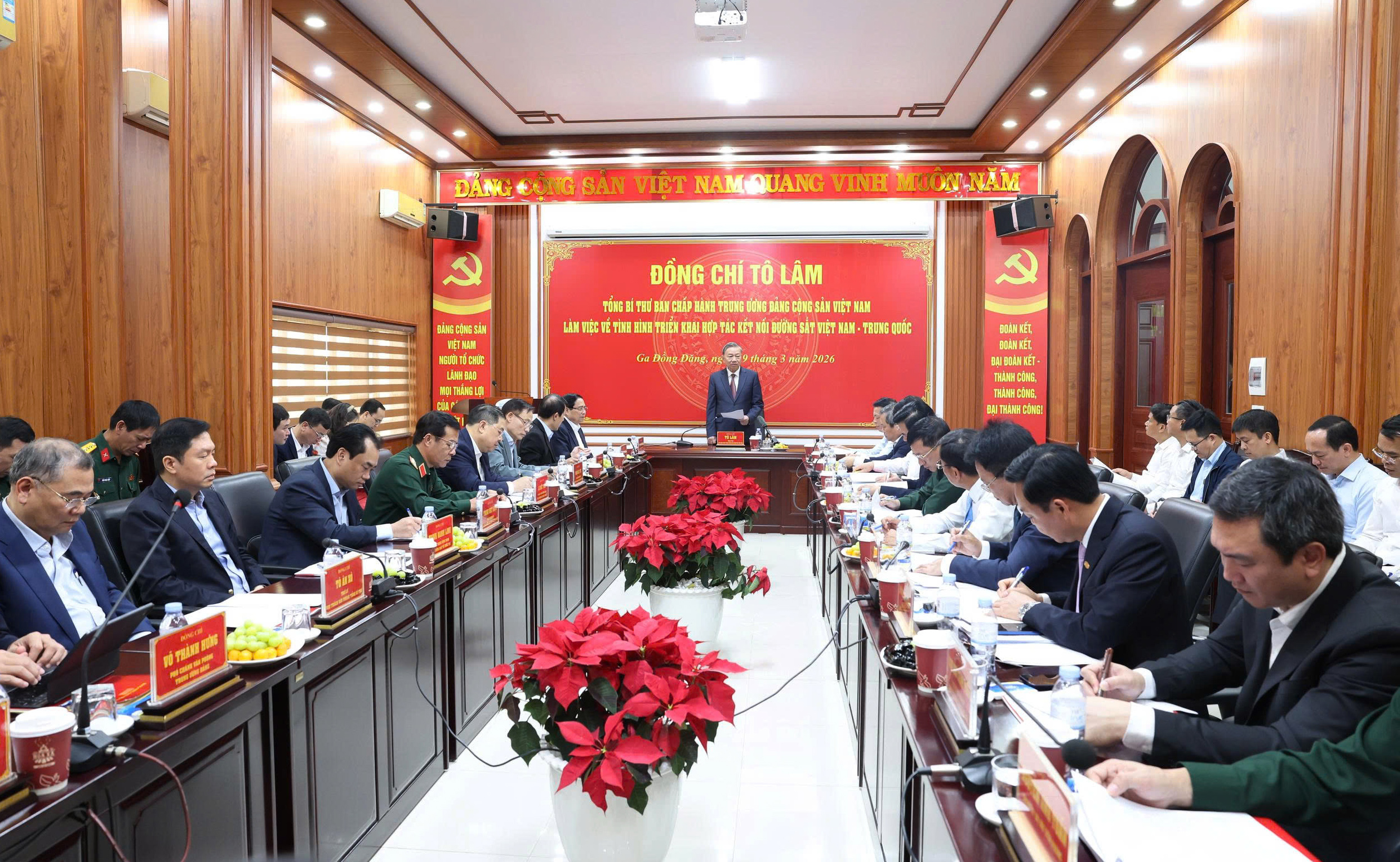 Phát biểu chỉ đạo tại buổi làm việc, Tổng Bí thư Tô Lâm nhấn mạnh, việc hợp tác kết nối hạ tầng đường sắt giữa Việt Nam và Trung Quốc có ý nghĩa quan trọng, là không gian hợp tác hiệu quả, thiết thực giữa hai nước và cũng là đòn bẩy mạnh mẽ để hiện đại hóa hạ tầng, giảm chi phí logistics và mở rộng kết nối quốc tế. Cụ thể, việc hợp tác kết nối đường sắt giữa hai nước góp phần giảm chi phí và thời gian, giảm ùn tắc cửa khẩu; kết nối với mạng lưới vận tải đường sắt Á – Âu, giảm phụ thuộc vận tải đường biển; thúc đẩy hành lang kinh tế, tăng liên kết vùng, liên kết khu vực; nâng cao vị thế Việt Nam trong chuỗi cung ứng của châu Á.