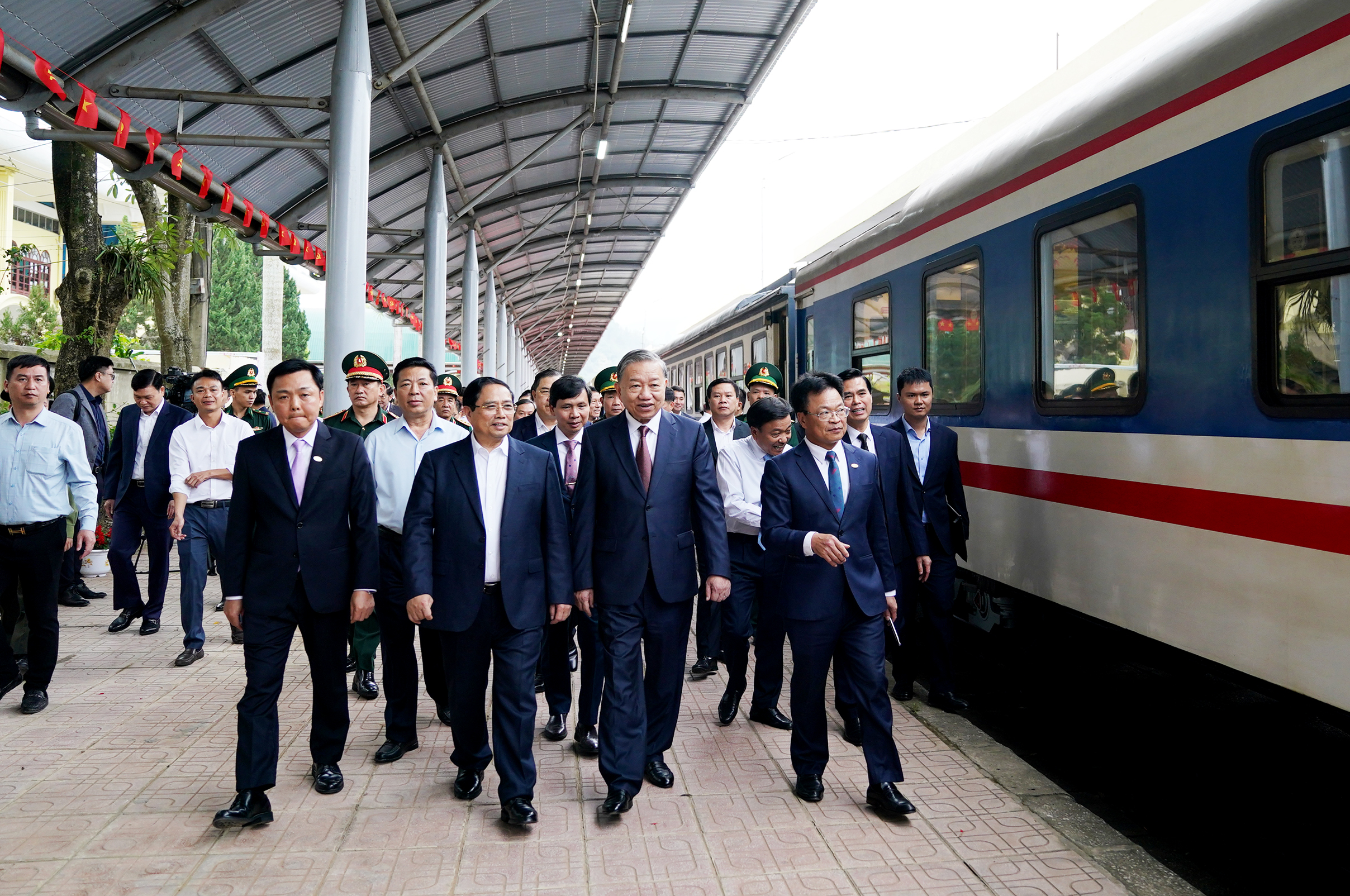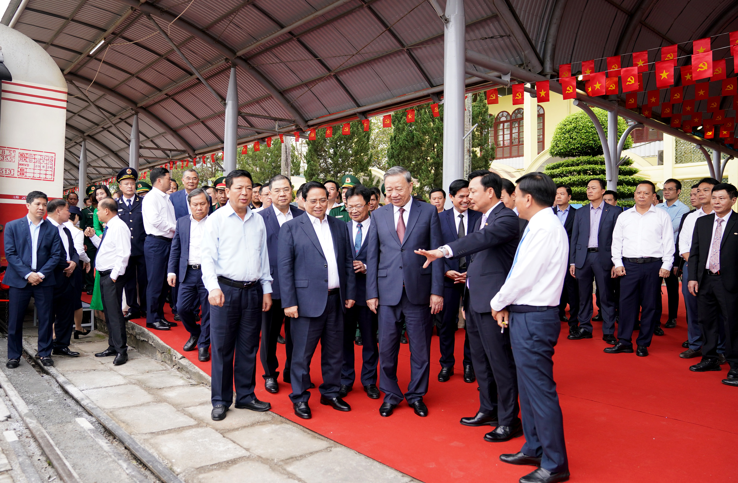 Đồng chí Tổng Bí thư Tô Lâm và Thủ tướng Chính phủ Phạm Minh Chính cùng lãnh đạo các bộ, ngành trung ương và tỉnh Lạng Sơn thăm khu vực ga Đồng Đăng