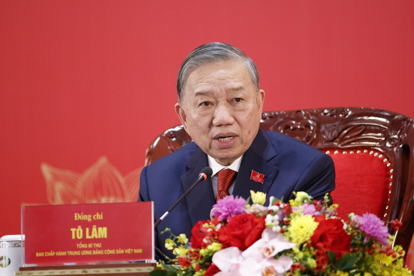 Tổng Bí thư Tô Lâm chủ trì buổi họp báo. (Ảnh: TTXVN)