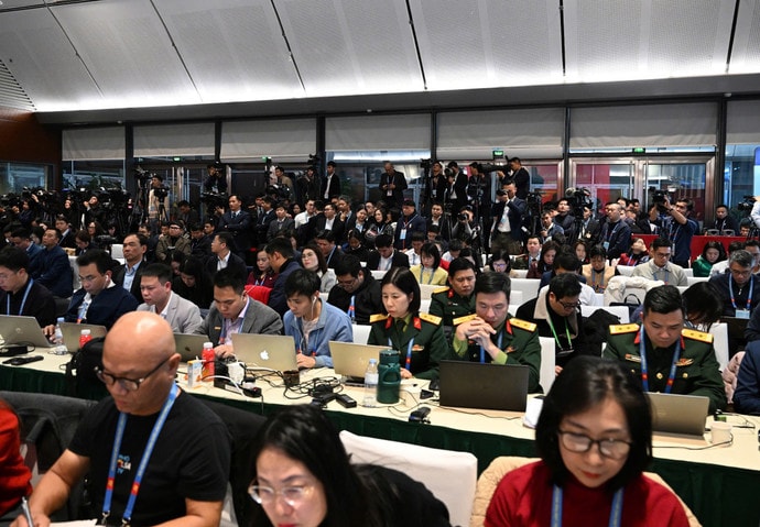 Đông đảo phóng viên các cơ quan báo chí trong nước và nước ngoài dự Họp báo.