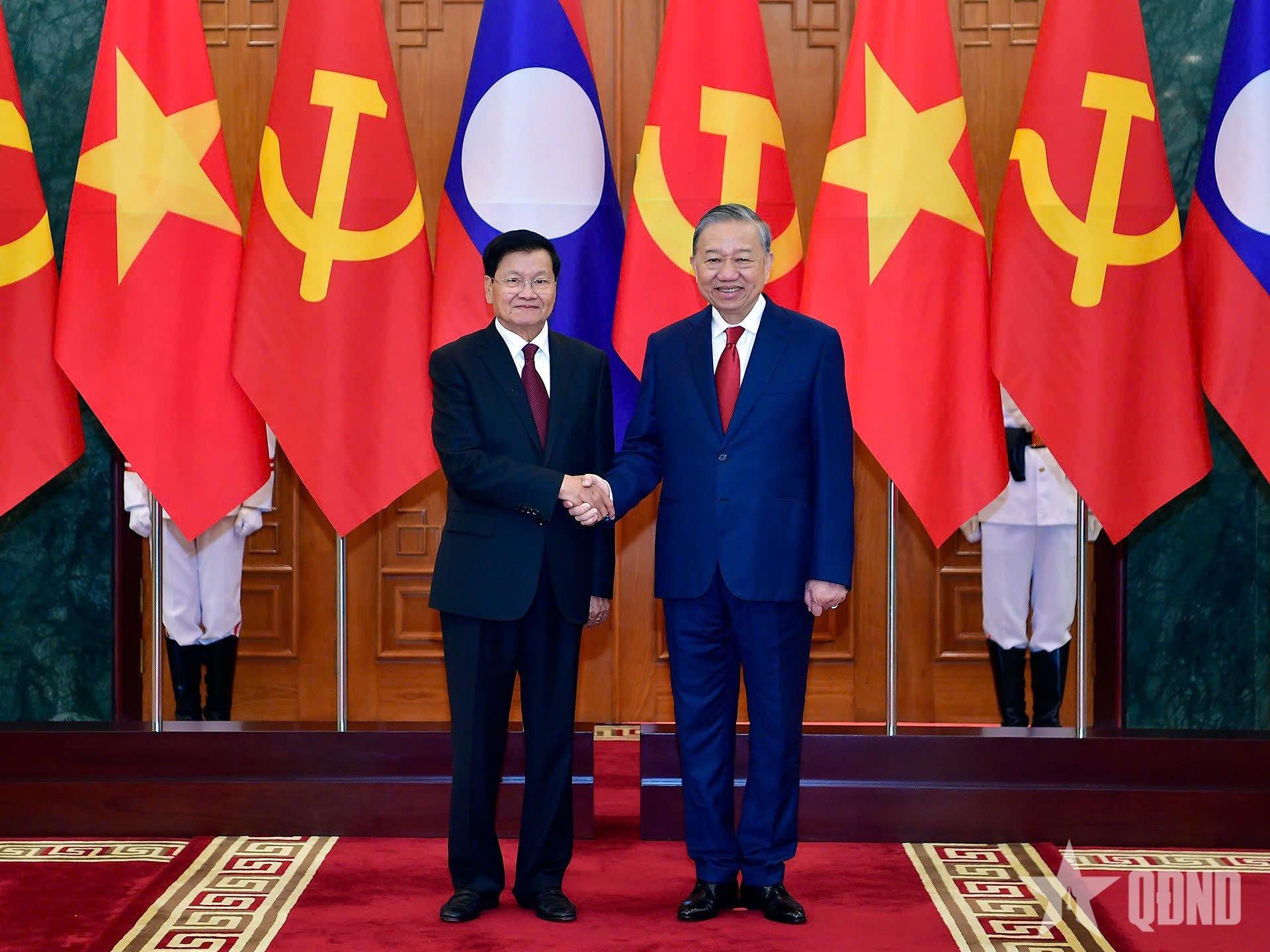 Tổng Bí thư Tô Lâm và Tổng Bí thư, Chủ tịch nước Lào Thongloun Sisoulith. Ảnh: TRỌNG HẢI