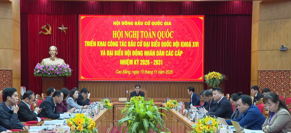 Tại điểm cầu Tỉnh ủy Cao Bằng, đồng chí Vũ Hồng Quang, Phó Bí thư Tỉnh ủy chủ trì. Tham dự có các đồng chí Ban Chỉ đạo bầu cử tỉnh, Ủy ban Bầu cử tỉnh; Thường trực HĐND tỉnh, UBND tỉnh; đại diện lãnh đạo Ban Tổ chức Tỉnh ủy, Sở Nội vụ, Ủy ban Mặt trận Tổ quốc tỉnh, Ủy ban Kiểm tra Tỉnh Ủy, Ban Tuyên giáo và Dân vận Tỉnh ủy, Ban Nội chính Tỉnh ủy, Văn phòng Tỉnh ủy, Văn phòng Đoàn ĐBQH và HĐND tỉnh, Văn phòng UBND tỉnh.