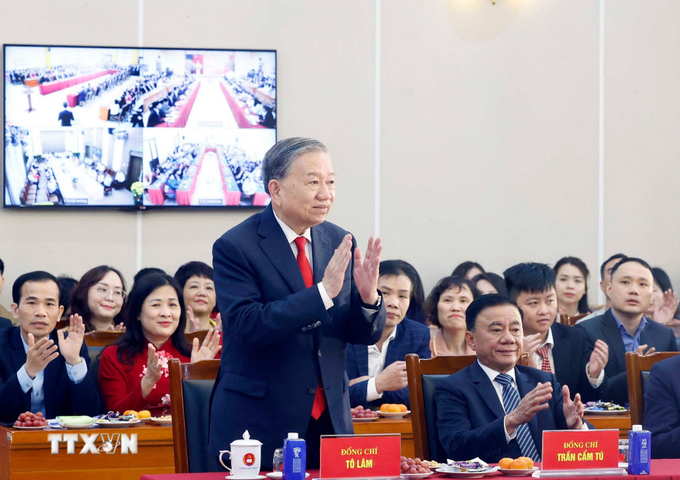Tổng Bí thư Tô Lâm chúc Tết cán bộ, công chức, viên chức, người lao động Văn phòng Trung ương Đảng. (Ảnh: Thống Nhất/TTXVN)
