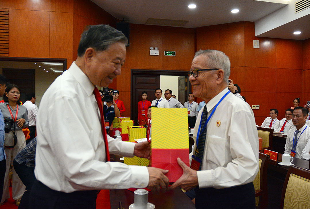 Nhân dịp này, Tổng Bí thư Tô Lâm đã trao các phần quà Tết tặng Đảng bộ, chính quyền, nhân dân TP Hồ Chí Minh; thăm hỏi, tặng quà các Bà mẹ Việt Nam anh hùng, cán bộ cao cấp nghỉ hưu trên địa bàn, người có công, gia đình chính sách tiêu biểu.