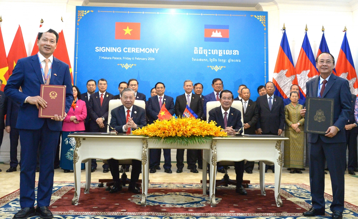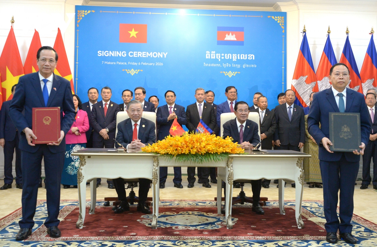 Tổng Bí thư Tô Lâm và Chủ tịch Đảng Nhân dân Campuchia Hun Sen chứng kiến lễ ký văn kiện, thỏa thuận hợp tác giữa Bộ Ngoại giao nước Cộng hòa XHCN Việt Nam và Ban Đối ngoại Trung ương Đảng Nhân dân Campuchia giai đoạn 2026-2030.