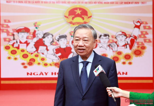 Trả lời phỏng vấn báo chí sau khi thực hiện bỏ phiếu, Tổng Bí thư Tô Lâm bày tỏ phấn khởi khi được thực hiện quyền cử tri của mình tại nơi cư trú, đồng thời trực tiếp chứng kiến không khí đông đủ, phấn khởi của bà con cử tri tham gia cuộc bầu cử đại biểu Quốc hội khóa XVI và đại biểu HĐND các cấp nhiệm kỳ 2026–2031.