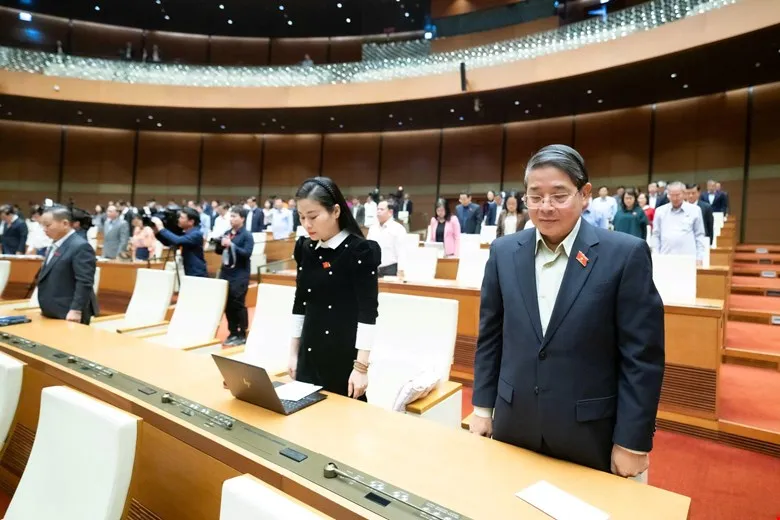 Các đại biểu Quốc hội dành một phút tưởng niệm những người dân tử vong do thiên tai. Ảnh: QH