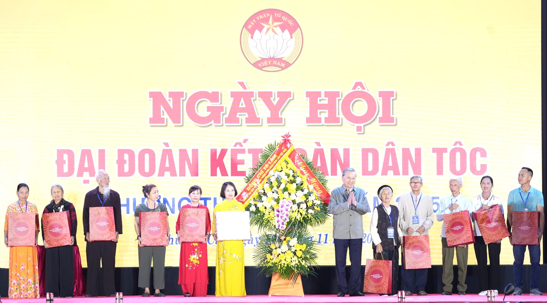 Phát biểu tại ngày hội, Tổng Bí thư Tô Lâm cho biết, trong không khí ấm áp của Ngày hội Đại đoàn kết toàn dân tộc, chúng ta cùng nhau khẳng định lại một chân lý giản dị: Đại đoàn kết toàn dân tộc là truyền thống, là tài sản, là di sản vô giá của cha ông, là sức mạnh làm nên mọi thắng lợi, mọi thành tựu của dân tộc ta.