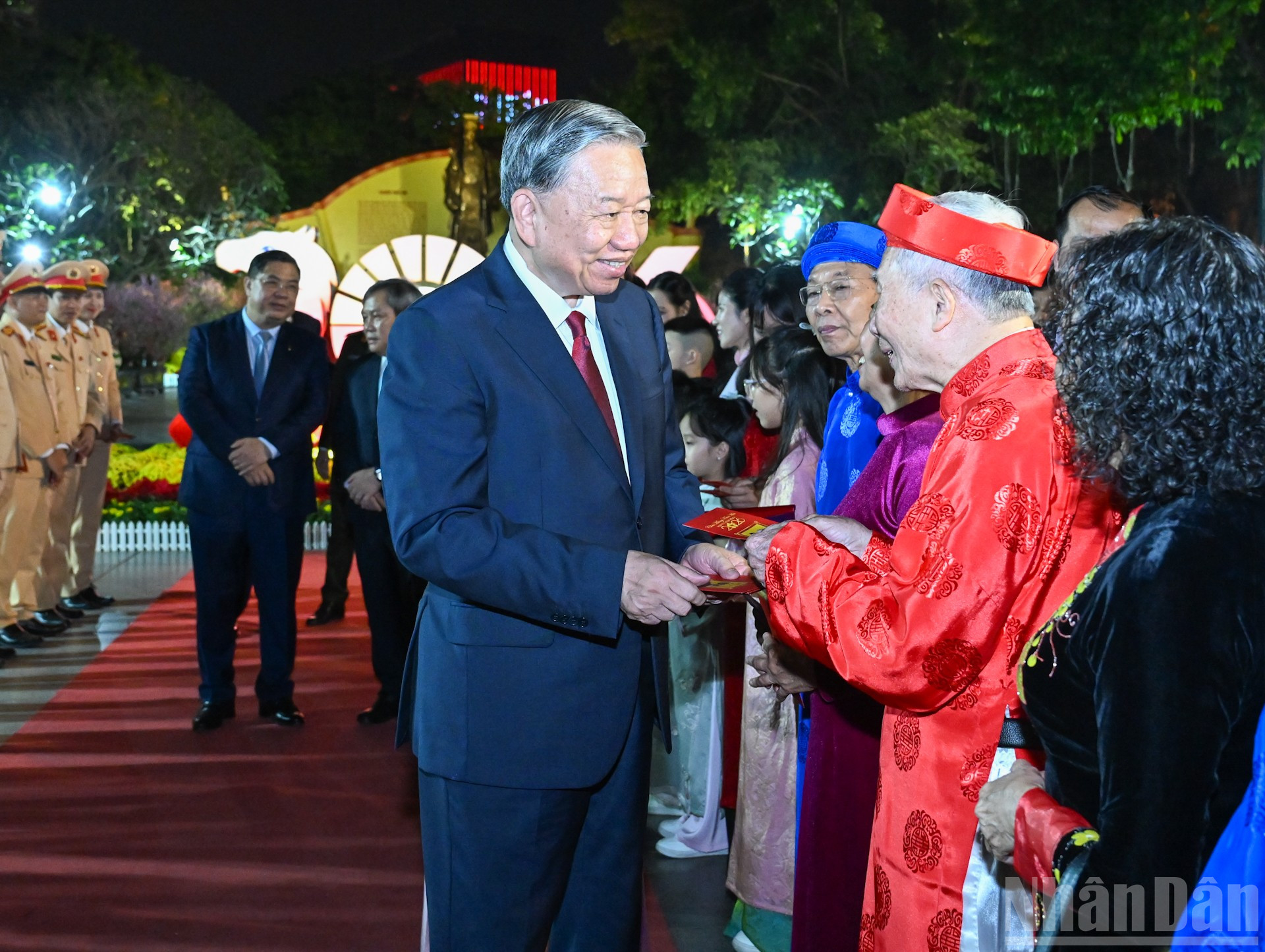 Tổng Bí thư Tô Lâm thăm hỏi, chúc Tết người cao tuổi Thủ đô. (Ảnh: DUY LINH)