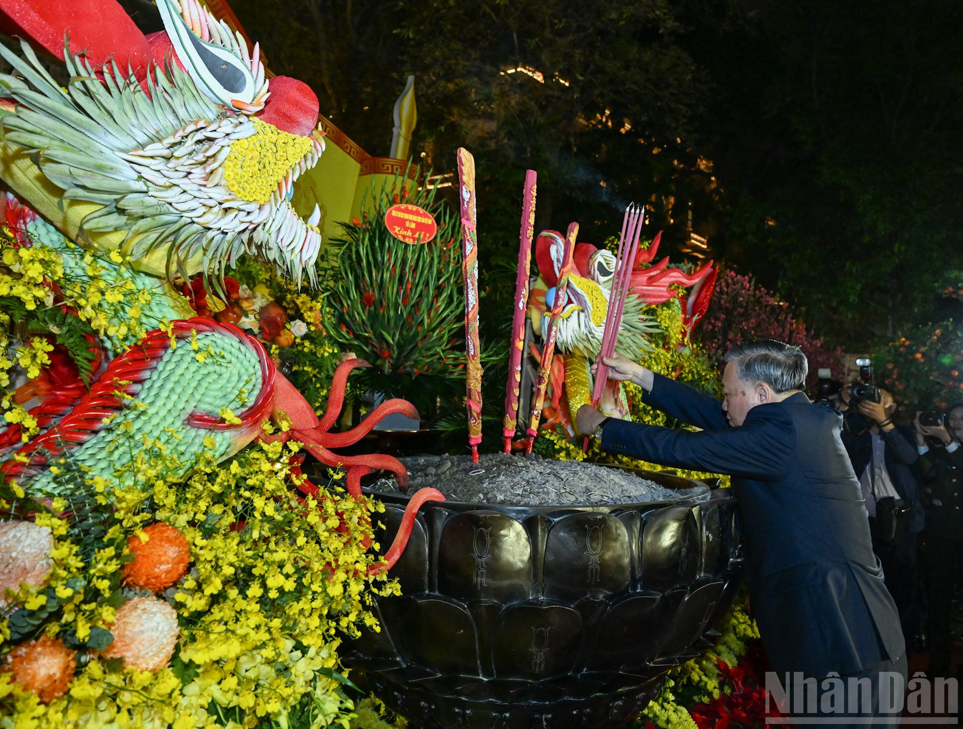 Tổng Bí thư Tô Lâm dâng hương tại Tượng đài Lý Thái Tổ. (Ảnh: DUY LINH)