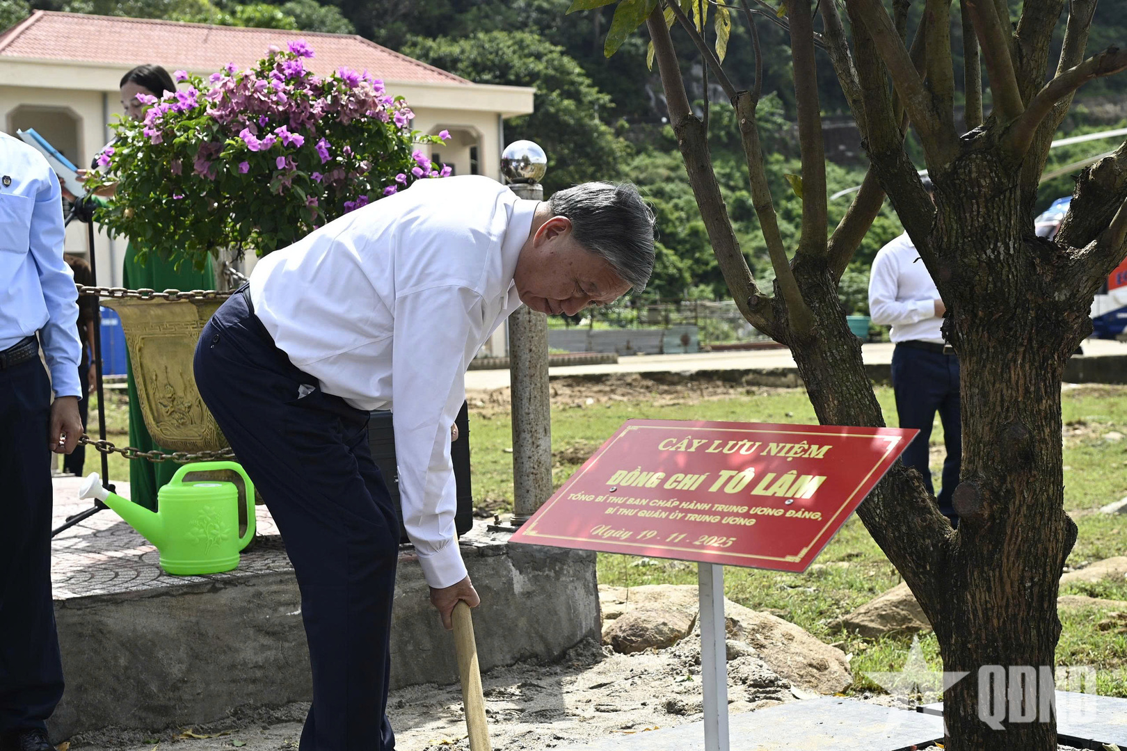 Tổng Bí thư Tô Lâm trồng cây lưu niệm phía sau khu tưởng niệm.