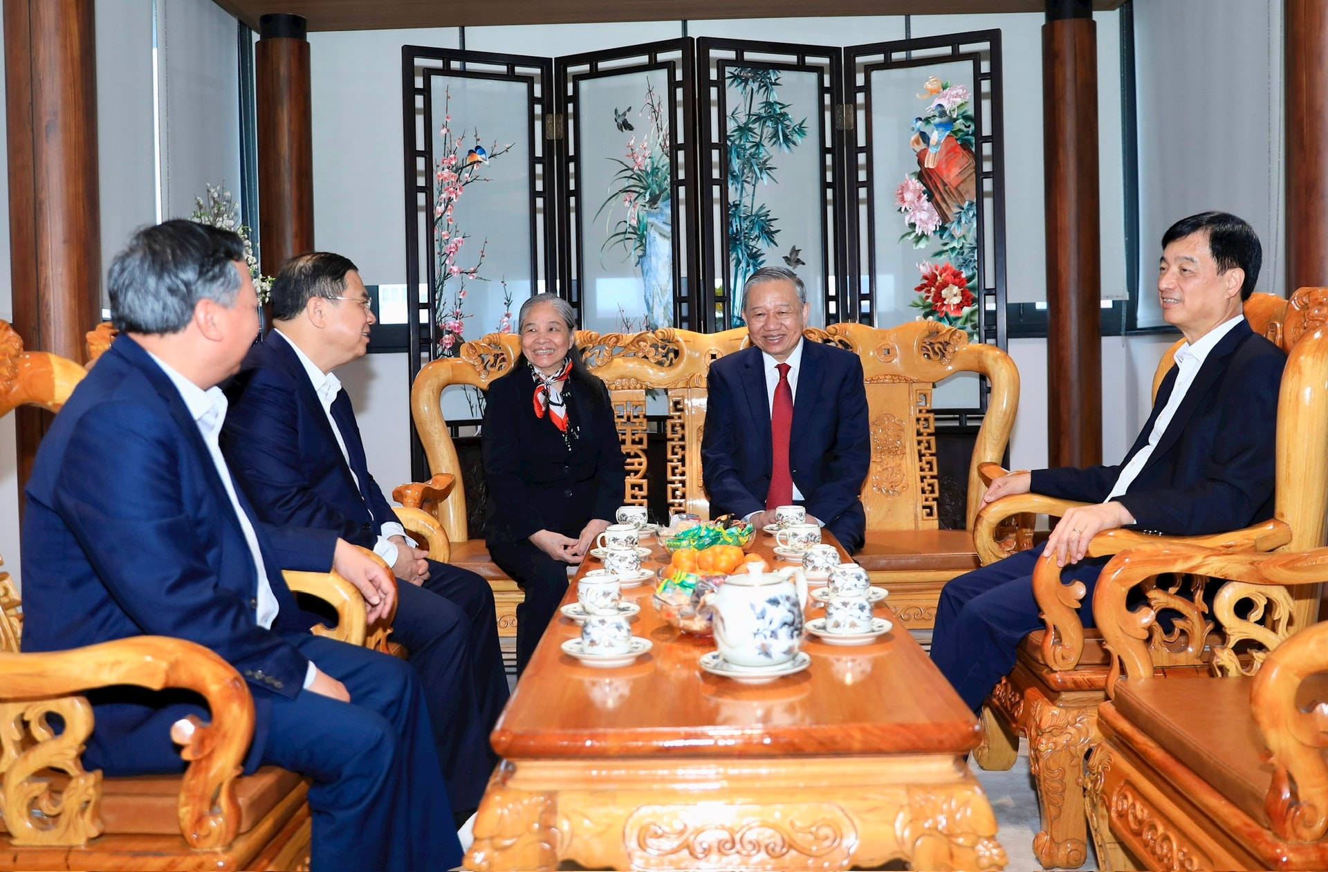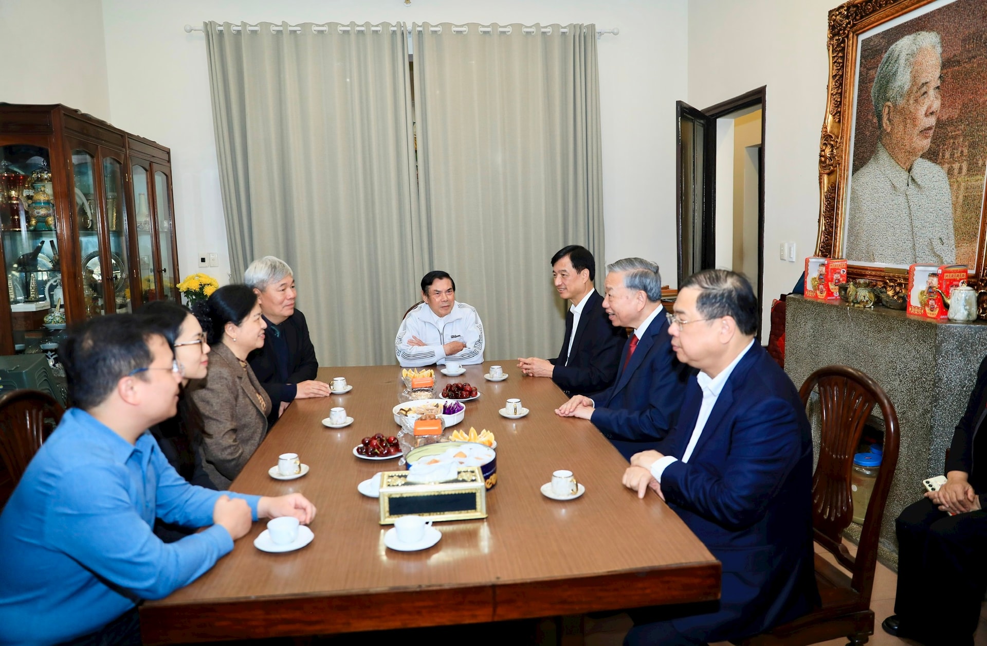 Trong không khí ấm áp, thân tình của những ngày giáp Tết cổ truyền dân tộc, Tổng Bí thư Tô Lâm ân cần thăm hỏi tình hình đời sống, công tác của thân nhân gia đình các đồng chí và mong muốn các gia đình tiếp tục phát huy truyền thống, giáo dục con cháu noi gương cha, ông, không ngừng nỗ lực học tập, phấn đấu đạt nhiều thành tích trong công tác, tích cực đóng góp xây dựng, phát triển quê hương, đất nước.