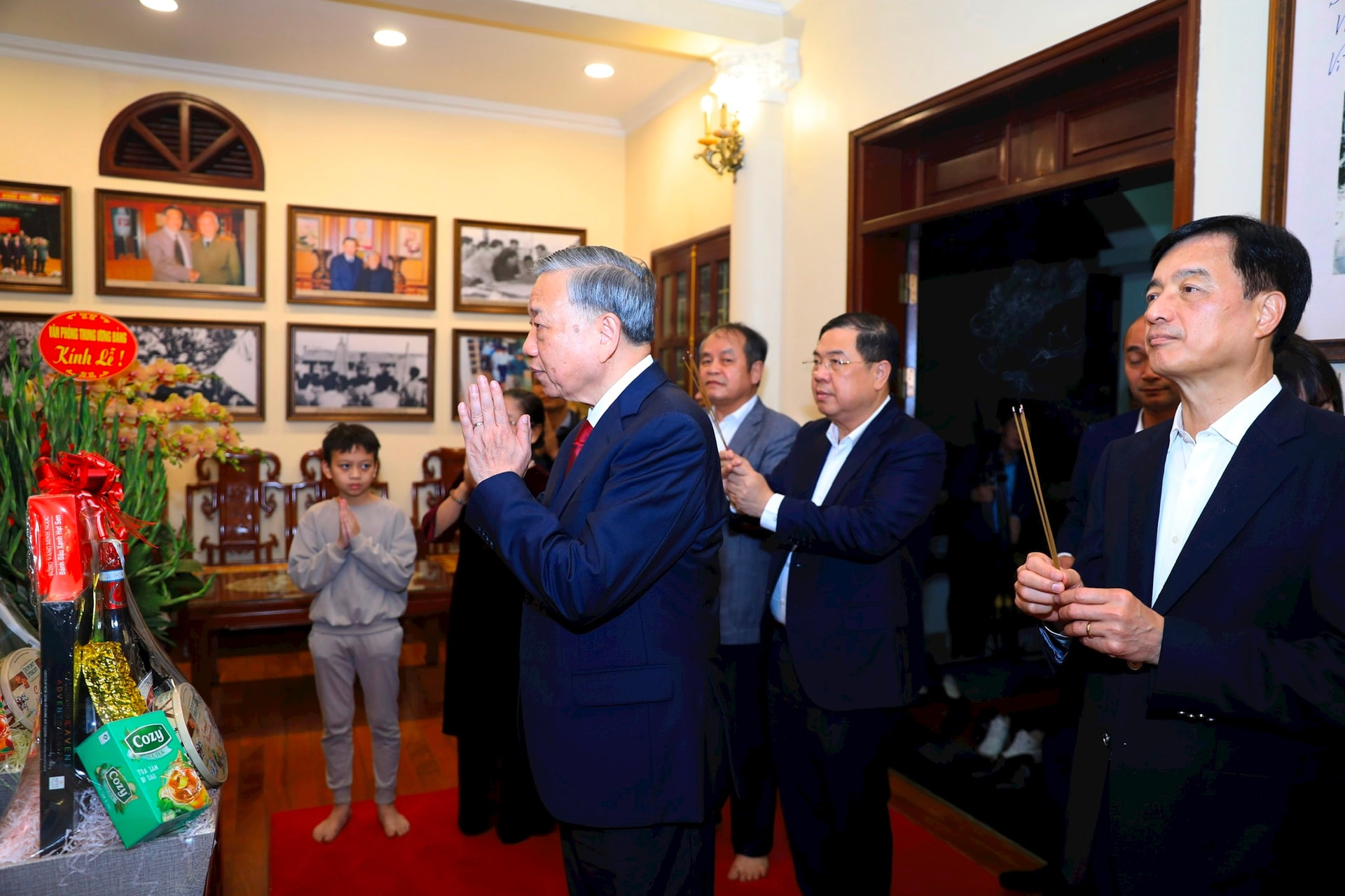 Trong không khí trang nghiêm và xúc động, Tổng Bí thư Tô Lâm đã thắp nén hương thơm, thành kính tri ân, tưởng nhớ các đồng chí Cố Tổng Bí thư: Trường Chinh, Lê Duẩn, Đỗ Mười, Lê Khả Phiêu, Nguyễn Phú Trọng và Đại tướng Võ Nguyên Giáp; bày tỏ lòng biết ơn sâu sắc công lao to lớn của các bậc tiền bối đối với sự nghiệp cách mạng của Đảng, của dân tộc.