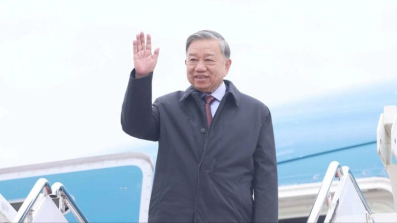 Tổng bí thư Tô Lâm tại sân bay quân sự Andrews hôm 18/2. Ảnh: TTXVN
