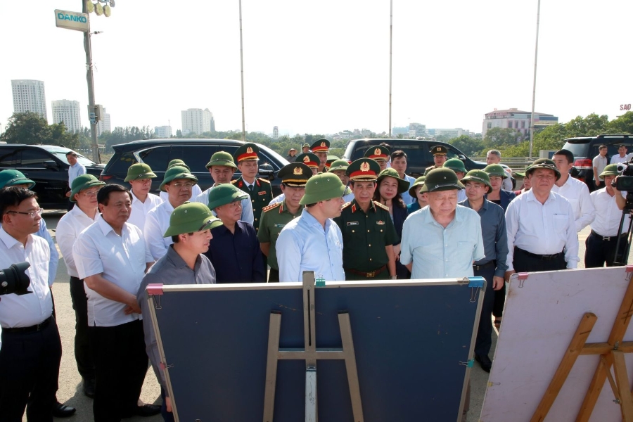 Sau khi khảo sát tình hình tại khu vực cầu Bến Tượng và nghe báo cáo của lãnh đạo tỉnh Thái Nguyên, Tổng Bí thư Tô Lâm ân cần thăm hỏi, chia sẻ với những khó khăn của người dân bị ảnh hưởng bởi thiên tai, bão lũ. Tổng Bí thư đánh giá cao nỗ lực của cấp ủy, chính quyền, các lực lượng vũ trang, Mặt trận Tổ quốc, các tổ chức chính trị - xã hội trong việc kịp thời cứu hộ, cứu nạn và khắc phục hậu quả thiên tai.
