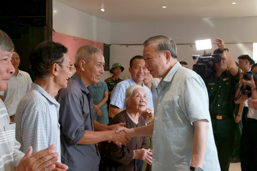 Tổng Bí thư Tô Lâm và Đoàn công tác thăm hỏi, động viên người dân phường Linh Sơn.