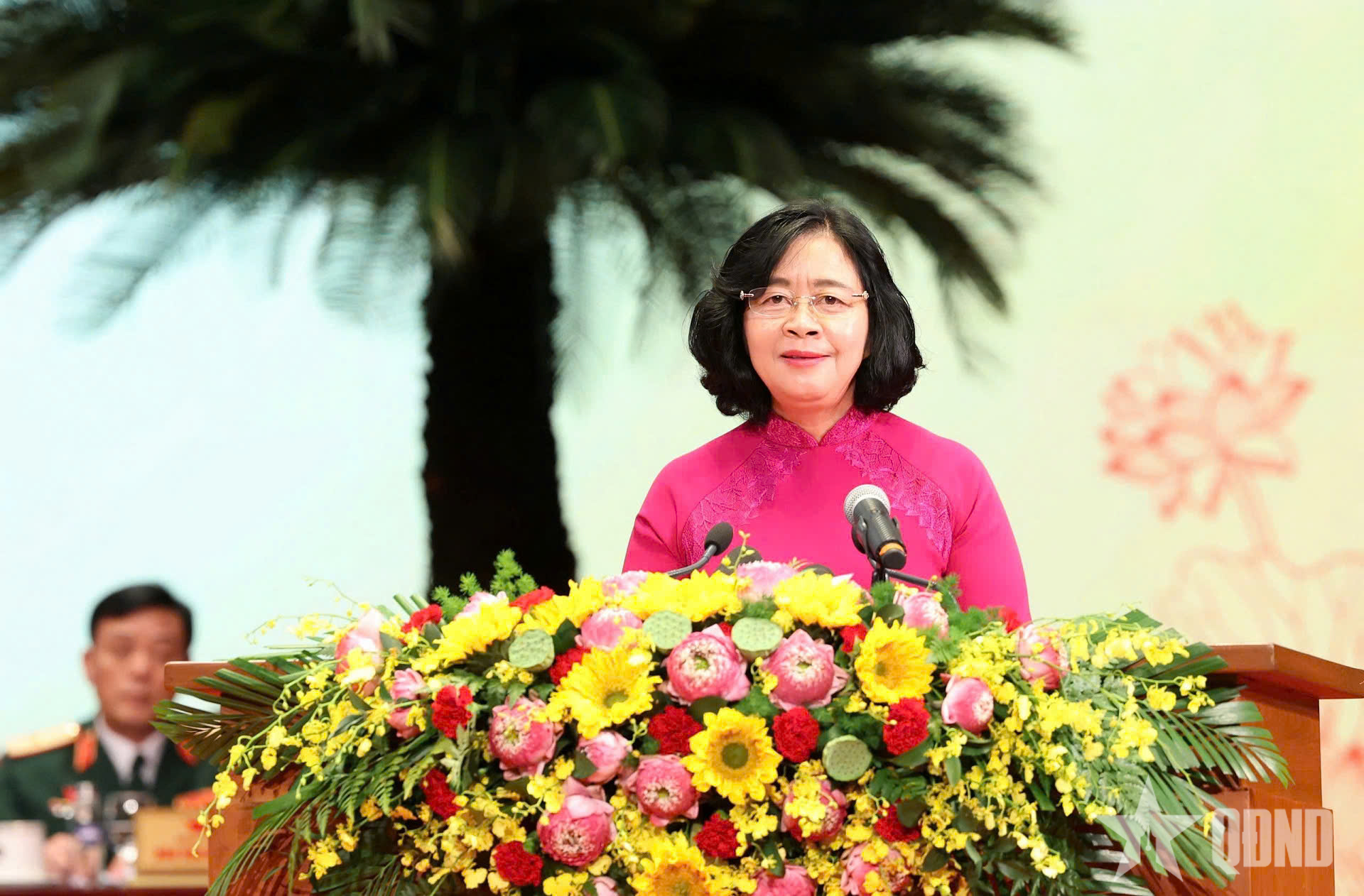 Bí thư Thành ủy Hà Nội Bùi Thị Minh Hoài phát biểu khai mạc đại hội.
