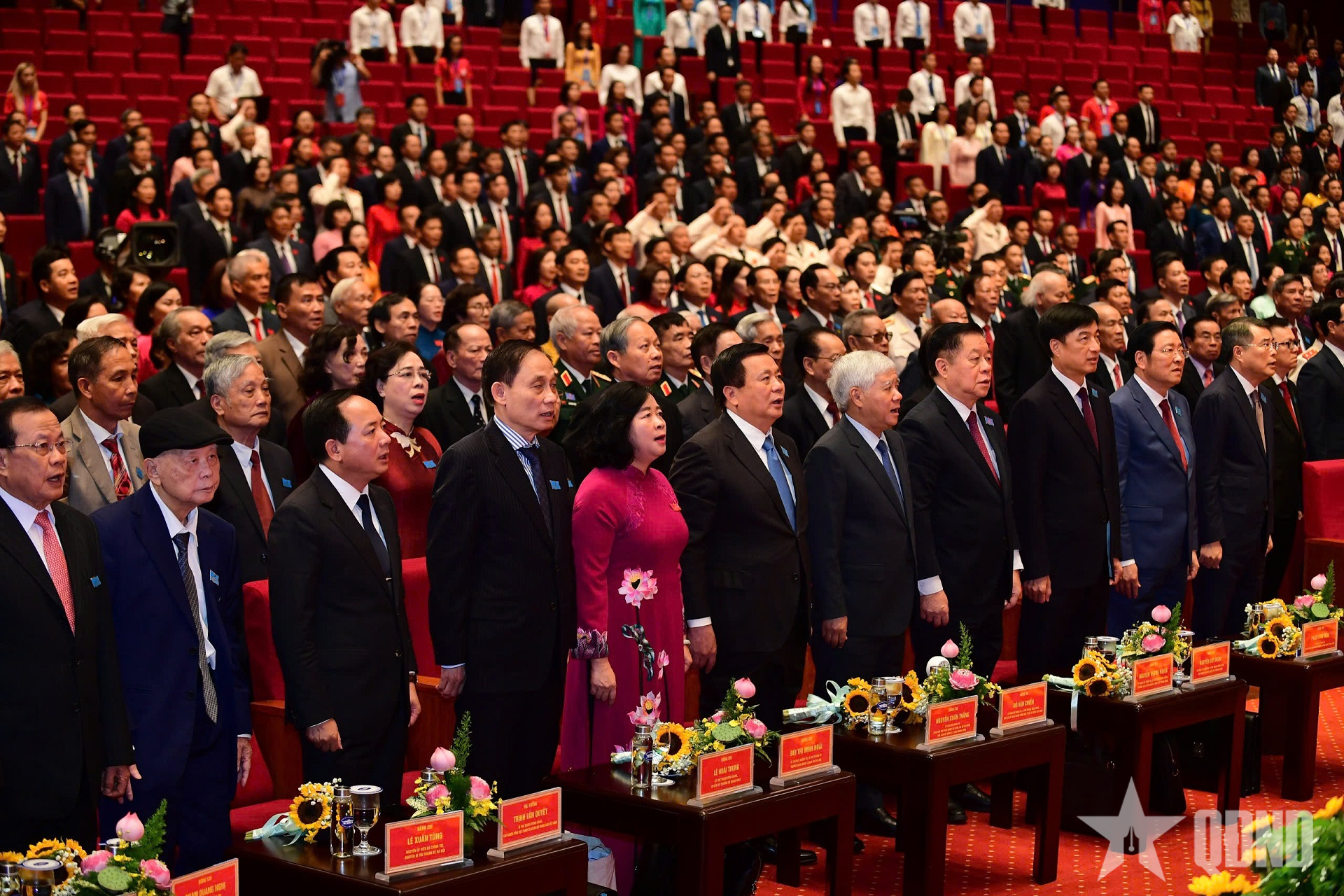 Các đồng chí lãnh đạo, nguyên lãnh đạo Đảng, Nhà nước và lãnh đạo thành phố Hà Nội tại Đại hội