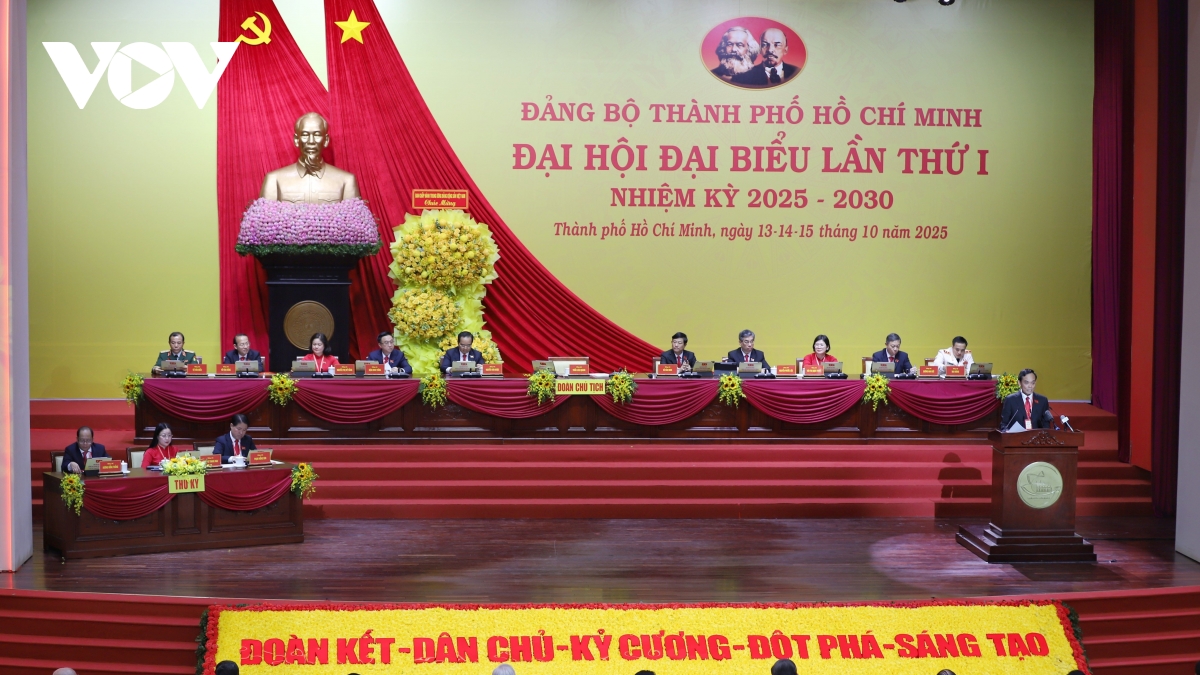 Với chủ đề “Xây dựng Đảng bộ và hệ thống chính trị trong sạch, vững mạnh; phát huy sức mạnh đại đoàn kết toàn dân tộc; đột phá phát triển khoa học, công nghệ, đổi mới sáng tạo và kinh tế tư nhân; tăng cường quốc phòng, an ninh, đối ngoại, hội nhập quốc tế; huy động và sử dụng hiệu quả mọi nguồn lực để TP.HCM tiên phong cùng cả nước trong kỷ nguyên mới”, sáng 14/10, Đại hội đại biểu Đảng bộ TP.HCM lần I, nhiệm kỳ 2025-2030 bước vào phiên làm việc chính thức với sự tham dự của 546 đại biểu đại diện cho hơn 366.000 đảng viên trong toàn Đảng bộ TP.HCM.
