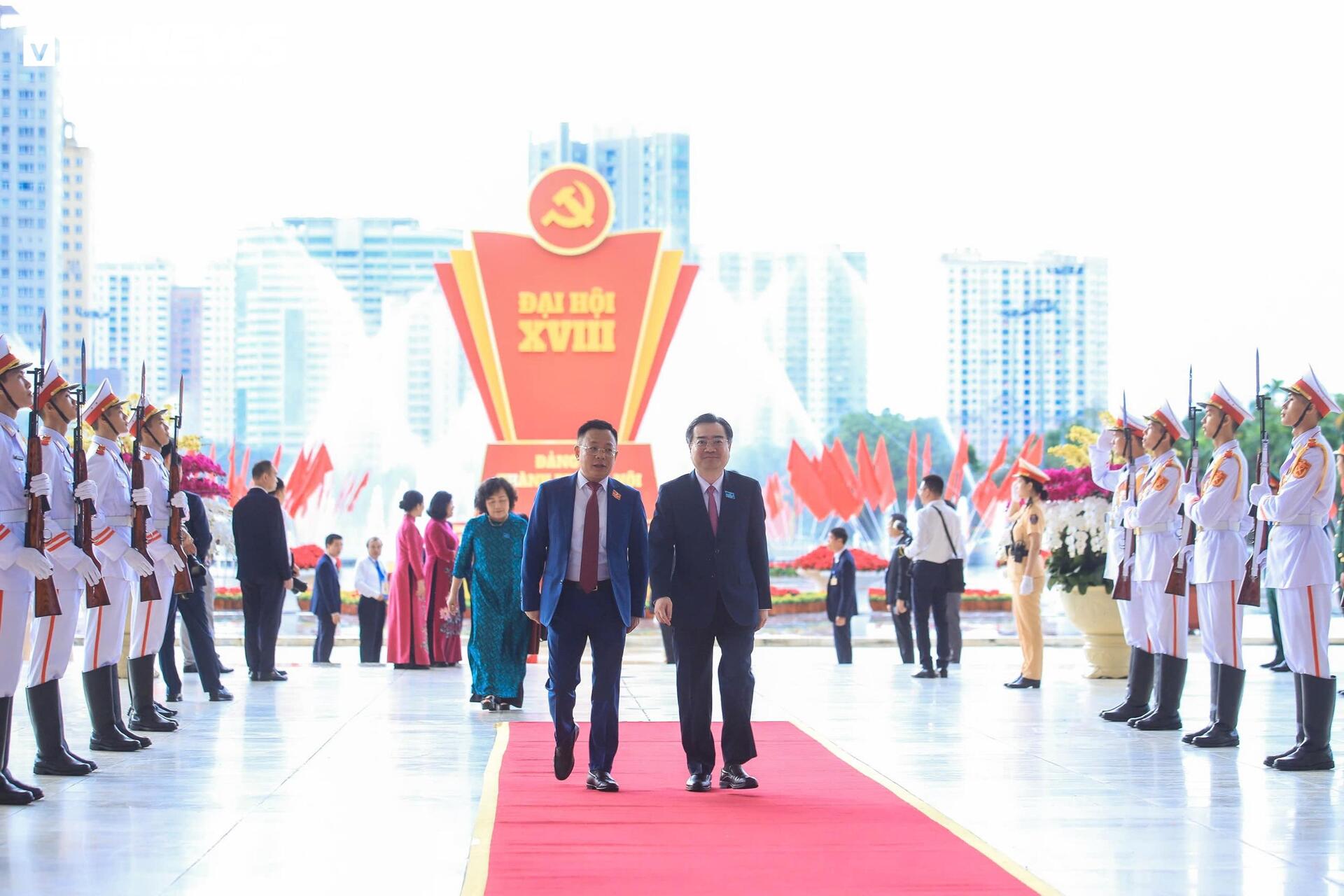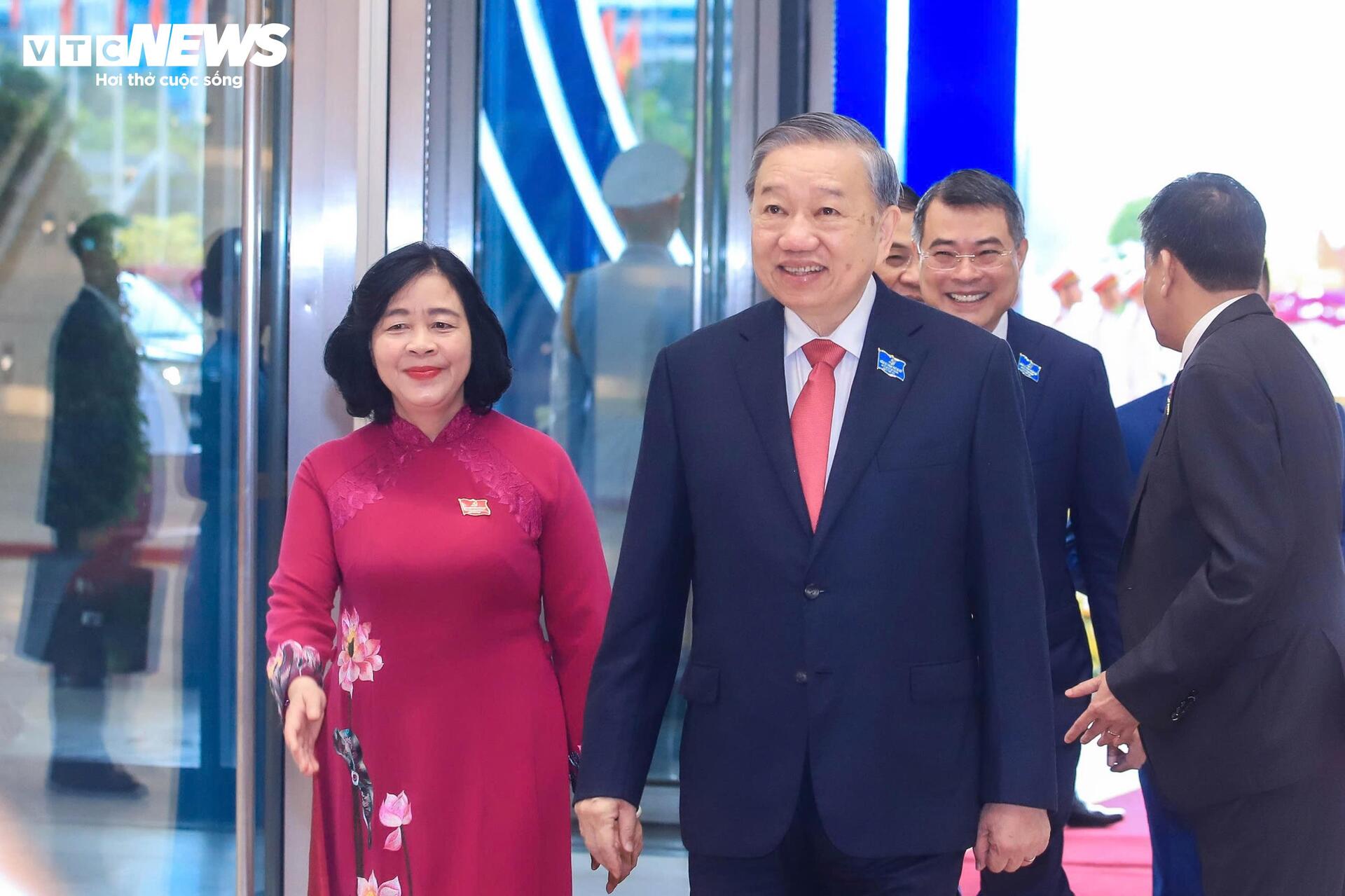 Bà Bùi Thị Minh Hoài, Ủy viên Bộ Chính trị, Bí thư Thành ủy Hà Nội đón Tổng Bí thư Tô Lâm đến dự Đại hội đại biểu Đảng bộ TP Hà Nội lần thứ XVIII, nhiệm kỳ 2025 - 2030.