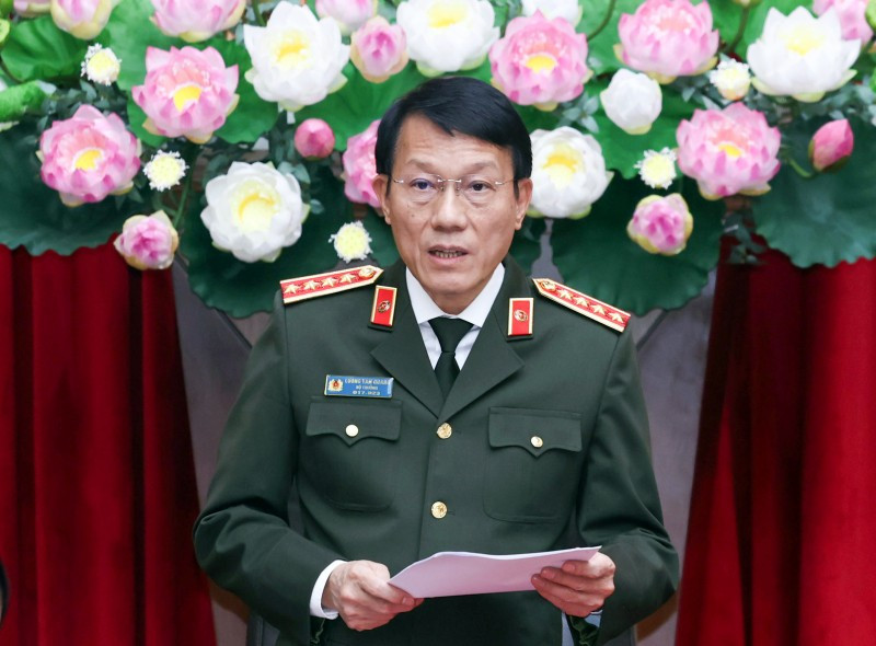 Về phía Đảng ủy Công an Trung ương, có các đồng chí: Đại tướng Lương Tam Quang, Ủy viên Bộ Chính trị, Bí thư Đảng ủy Công an Trung ương, Bộ trưởng Bộ Công an chủ trì Hội nghị; các đồng chí trong Đảng ủy Công an Trung ương, lãnh đạo Bộ Công an... Trong ảnh: Bộ trưởng Bộ Công an Lương Tam Quang phát biểu khai mạc hội nghị.