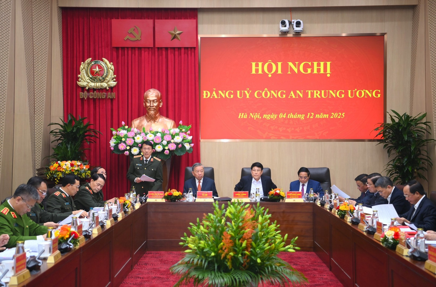 Thực hiện Quy chế làm việc và Chương trình công tác năm 2025, ngày 4/12, tại Hà Nội, Đảng ủy Công an Trung ương tổ chức Hội nghị Đảng ủy Công an Trung ương năm 2025 để cho ý kiến vào các nội dung theo thẩm quyền. Tổng Bí thư Tô Lâm, Ủy viên Ban Thường vụ Đảng ủy Công an Trung ương đến dự và phát biểu chỉ đạo.