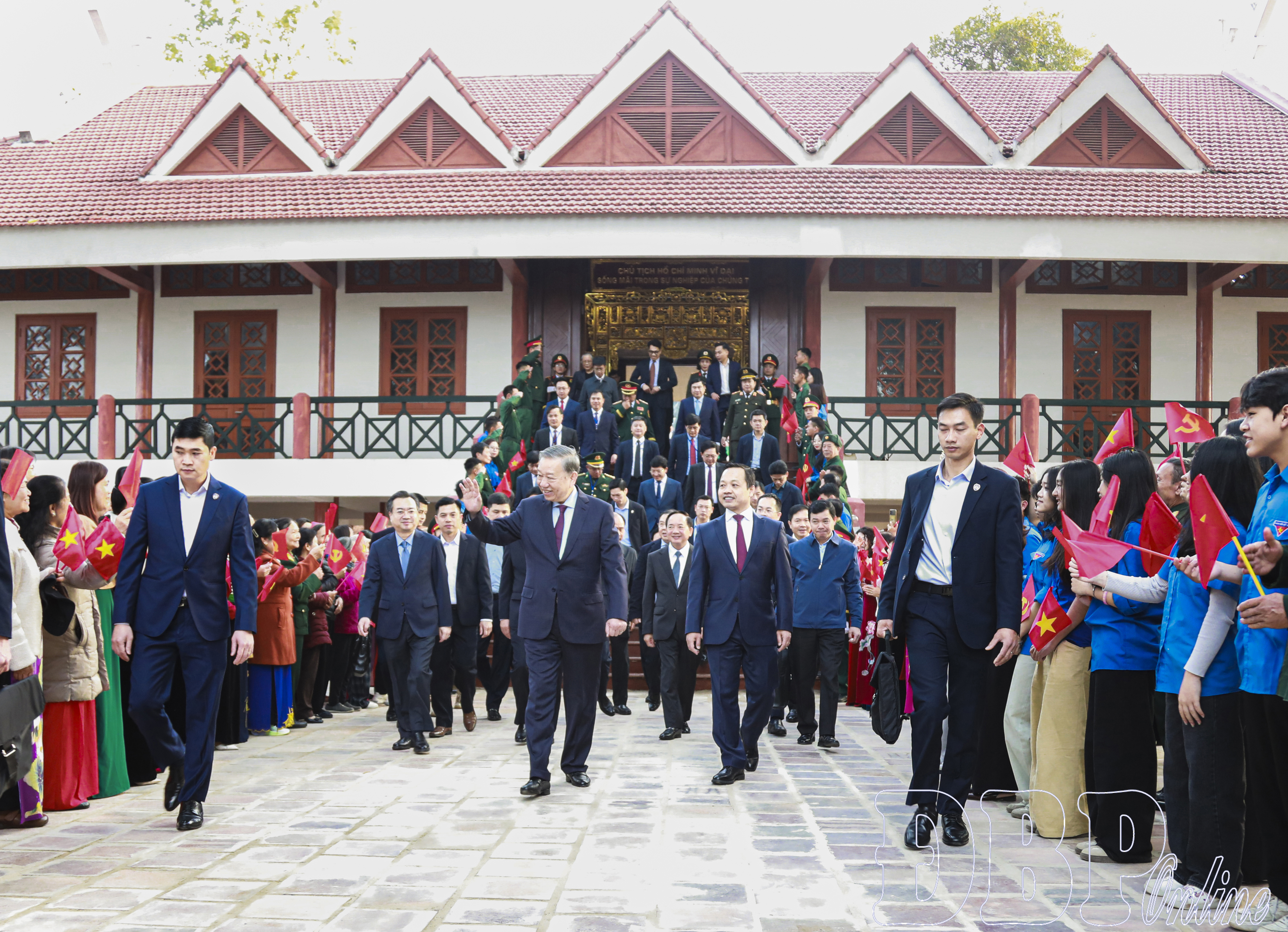 Tổng Bí thư Tô Lâm, các đại biểu cùng đông đảo cán bộ, người dân, học sinh dự Lễ khánh thành Nhà tưởng niệm Chủ tịch Hồ Chí Minh tại di tích Đồi E2.