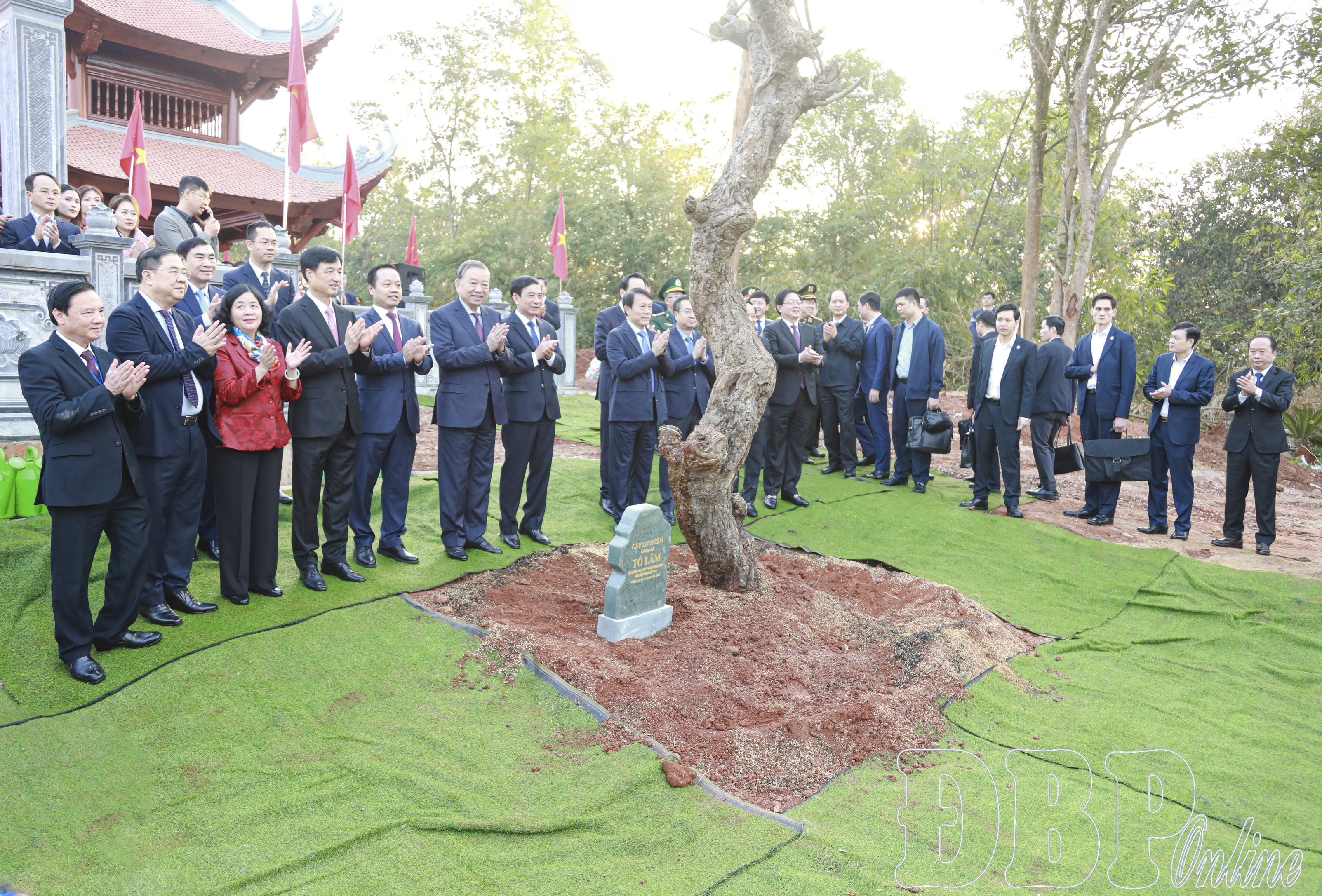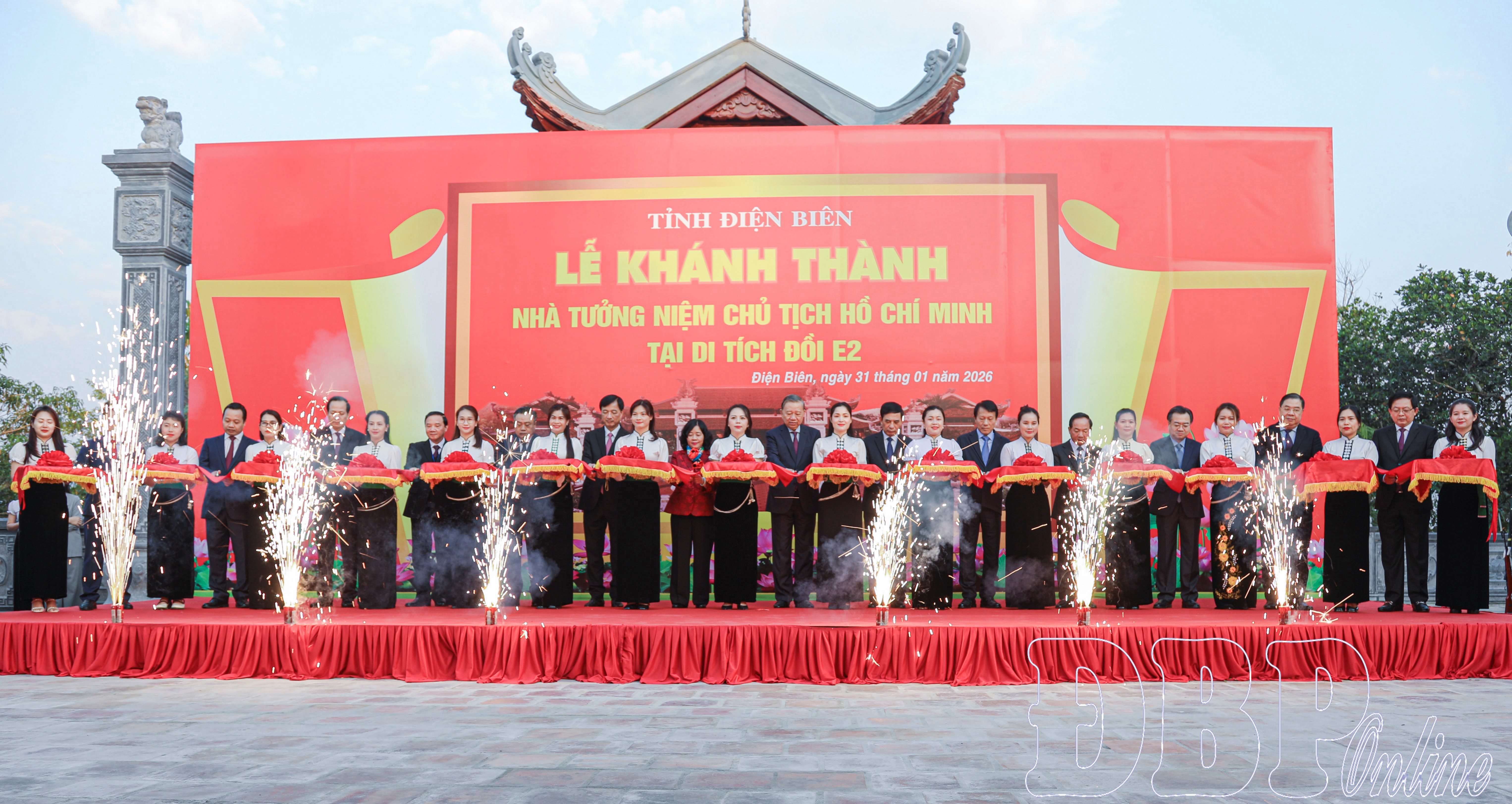 Cùng với đó, Tổng Bí thư Tô Lâm cùng các đại biểu đã thực hiện nghi thức cắt băng khánh thành Nhà tưởng niệm Chủ tịch Hồ Chí Minh tại di tích Đồi E2; trồng cây lưu niệm tại khuôn viên Nhà tưởng niệm.