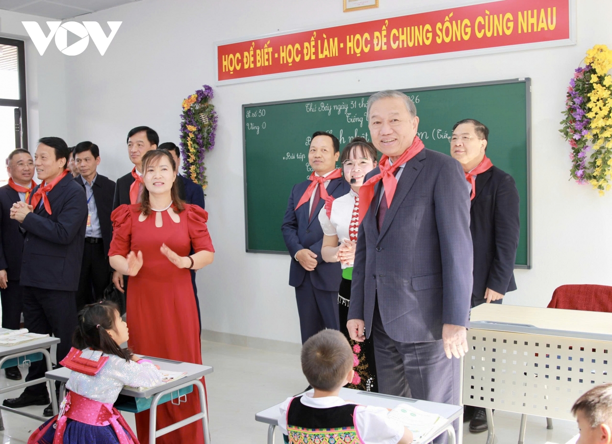 "Mục tiêu đặt ra là chậm nhất đầu năm học 2027, toàn bộ 248 trường phổ thông nội trú liên cấp tại 248 xã biên giới đất liền phải được hoàn thành và đưa vào hoạt động đồng bộ”, Tổng Bí thư nhấn mạnh.