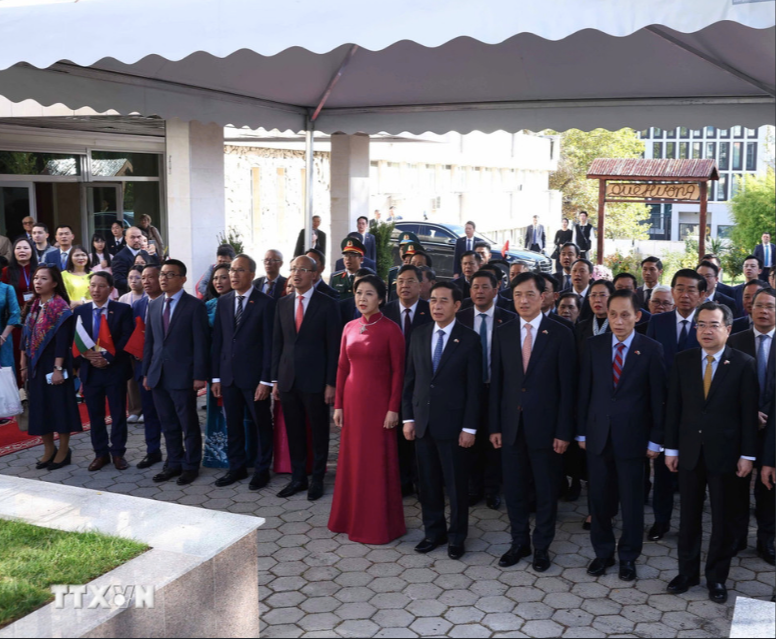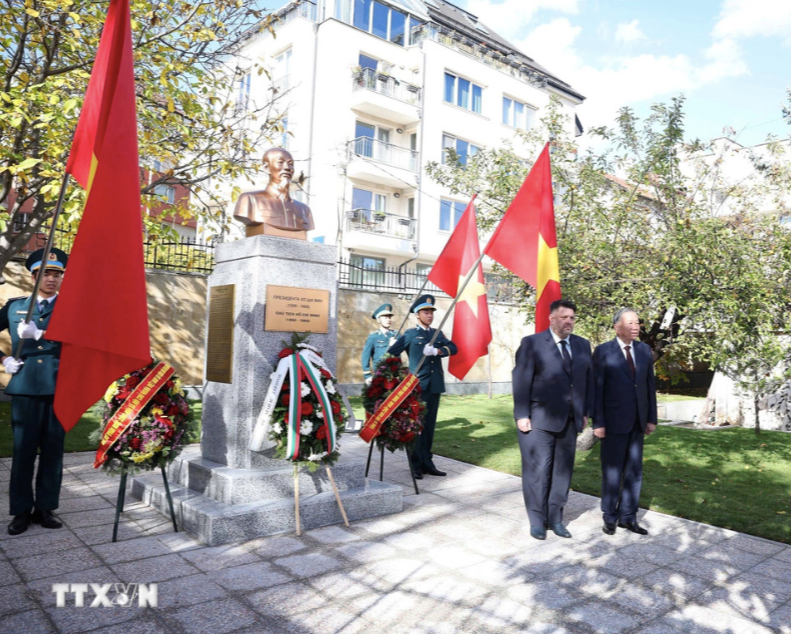 Trong khuôn khổ chuyến thăm Bulgaria lần này, Tổng Bí thư Tô Lâm và Phu nhân cùng đoàn đại biểu cấp cao Việt Nam cũng đã đến thăm Cung điện Vrana, nơi Chủ tịch Hồ Chí Minh lưu trú trong chuyến thăm hữu nghị chính thức tới Bulgaria năm 1957.