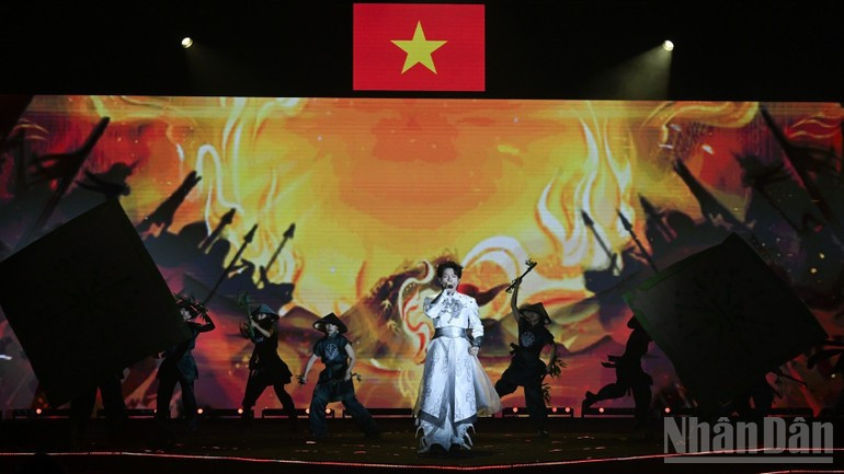Một tiết mục văn nghệ đặc sắc được biểu diễn tại lễ khởi công. (Ảnh: TRẦN HẢI)