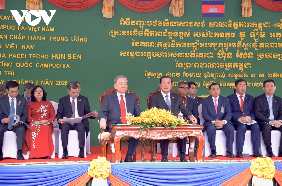 Tổng Bí thư Tô Lâm, Chủ tịch CPP Samdech Techo Hun Sen dự Lễ động thổ Trường Hữu nghị Campuchia-Việt Nam