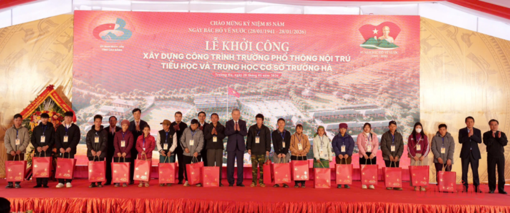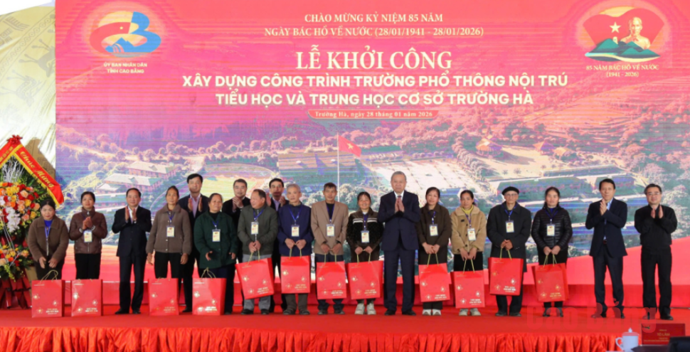 Tổng Bí thư Tô Lâm mong muốn các cháu học sinh xã Trường Hà nói riêng và Cao Bằng nói chung không chỉ học để thoát nghèo mà còn học vì khát vọng vươn lên làm giàu cho bản thân, cho gia đình, góp phần xây dựng quê hương cội nguồn cách mạng ngày càng giàu đẹp. Mỗi cháu học sinh là một cột mốc sống, khám phá về tri thức, lòng yêu nước trên mảnh đất thiêng liêng biên giới. Với tinh thần đoàn kết, tinh thần trách nhiệm, quyết tâm cao của Đảng bộ, chính quyền và nhân dân các dân tộc tỉnh Cao Bằng, đồng chí tin tưởng Trường phổ thông nội trú TH & THCS Trường Hà sẽ sớm hoàn thành đi vào hoạt động hiệu quả, trở thành điểm sáng về giáo dục vùng biên, góp phần tạo nguồn nhân lực, tạo dựng tương lai bền vững ở địa phương, đóng góp thiết thực vào sự nghiệp xây dựng và bảo vệ Tổ quốc. Mỗi nỗ lực học tập, mỗi lớp học được xây lên là thêm một niềm tin được thắp sáng cho tương lai của vùng biên cương.
